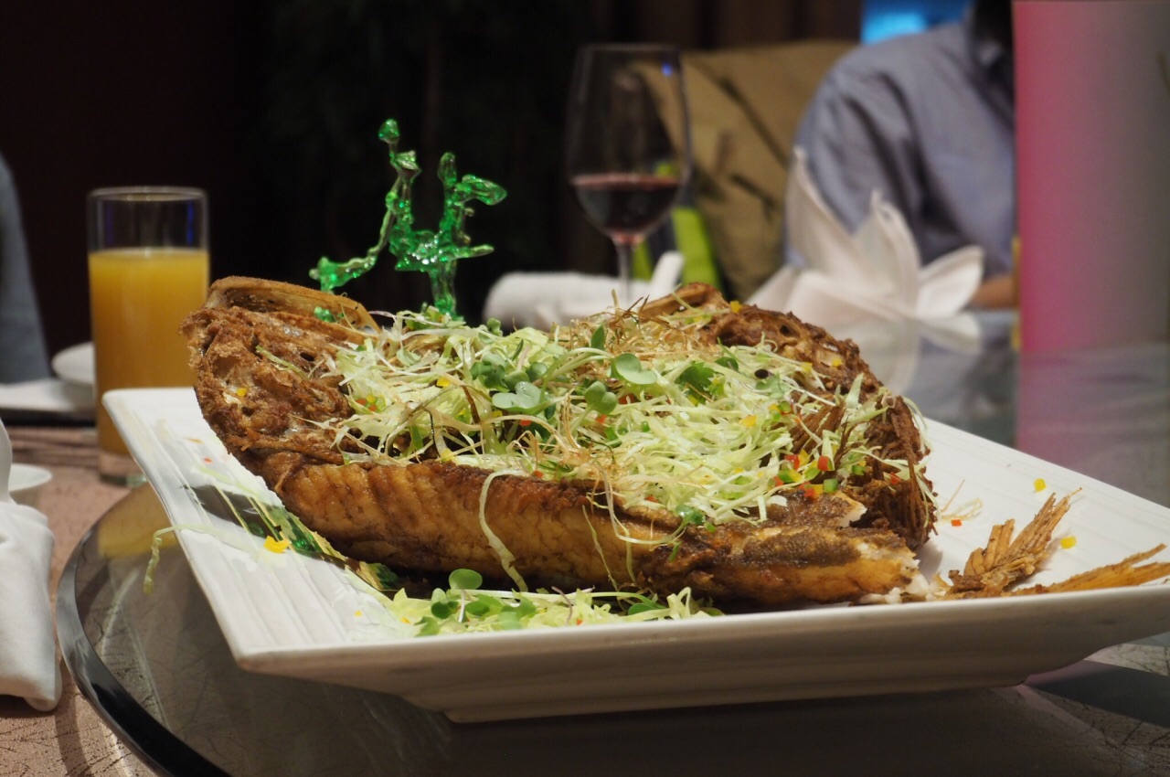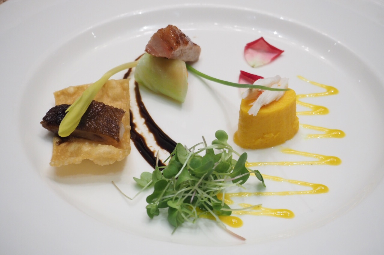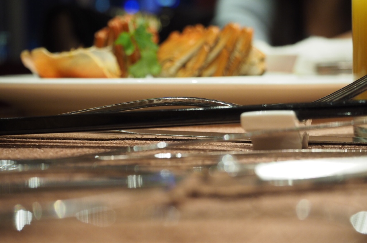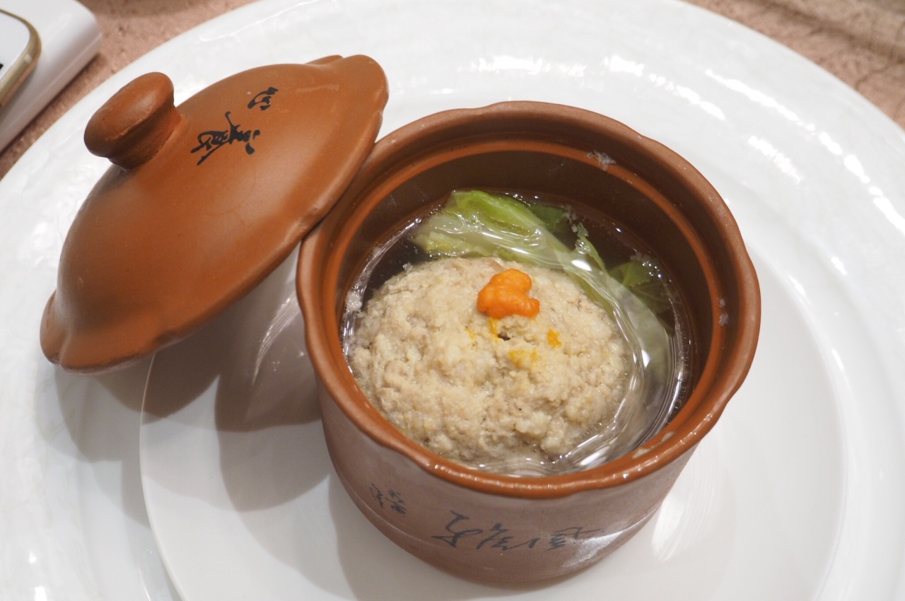 所谓秋风起,蟹脚痒,又到了一年一度的金九银十,正是品蟹好时节。八人聚餐,要精致、私密、考究,自然是锁定了一些高端酒店的中餐厅,正巧朋友前几日住了世茂艾美,听说已经开始提供蟹宴,自然成为了首选。 位于市中心位置的艾美酒店,得天时地利人和,人气很足游客不断;他们家的几个餐厅一直在推陈出新,所以还吸引很多当地人前来品尝美食,约了艾美轩中餐厅的包房,出于住客的安全考虑,餐厅会单独安排在一边的电梯前往,工作人员态度很好,很容易就找到了。 先映入眼帘的是门口的大鱼缸,增添了很多灵气,包房在左侧,大堂在右侧,偌大的包房景观一流,大上海的繁华夜景尽收眼底,搭配一瓶好酒,晚宴开始了。 蟹宴自然以蟹作为主题,吃蟹工具齐备,既讲究又大气。 有机小米鸭配上海面皮、大闸蟹粉配南瓜、有机菜卷与炭烧猪颈肉作为前菜,中菜西吃,少量精美;香煎美味鱼除了搭配鱼汁之外,还另外准备了糖醋汁、沙拉汁和梅子酱,外脆里嫩,蘸取不同的酱料都各有一番风味。 百里香翡翠鲍鱼金菇卷之后,上了一道酱爆黑毛猪五花肉拼头抽生炒文昌鸡,搭配有机萝卜苗和玉米窝窝头,黑毛猪肉很香,餐桌上的健康就是吃出来的。 重头戏来了,红扑扑的大闸蟹端了上来,个头很大,一雌一雄,蟹醋是艾美轩自己调制的,金黄色的蟹毛,开盖之后非常的饱满,用蟹针挑出蟹肉,再蘸取醋汁,一口下去真是大大的满足。品蟹完毕会送上美腻玻璃容器装的洗手水,和一杯姜茶驱寒,非常的贴心,免去了排队去洗手的尴尬。 随后是蟹粉系列,点缀了蟹粉的狮子头按盅上,做的非常鲜嫩清爽;芙蓉炒蟹粉走的是小清新路线,撩一撩都是蟹肉;蟹粉烧豆腐、蟹粉西兰花百花酿冬菇同样将鲜美进行到底。 重点提一提蟹粉灌汤包呀,特别大个儿,特别多的蟹粉,用勺子可以挖出好多,太意外太惊喜,吸完满满的汤汁再挖光所有的蟹粉,鲜的眉毛都掉了。 最后以南北杏炖雪梨收尾,润肺去燥,特别适合秋季养生。 一顿晚宴品了将近3小时,美酒美食相伴,还有志同道合的好朋友聊事儿,特别棒。