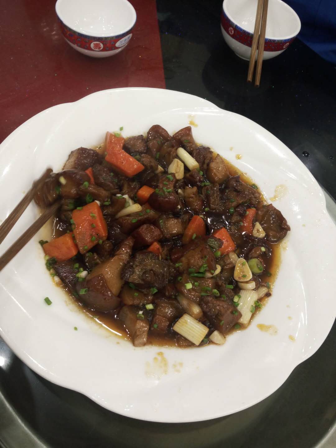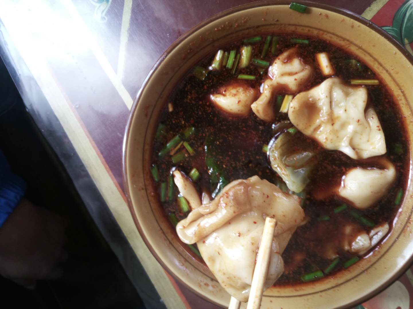 来到炉霍第二天,我们选了宾馆里的餐厅,准备先吃一顿午餐再继续出发。餐厅就在大堂附近,就一二十桌的规模大小。咱们用餐时周围没其他人,显得较安静。服务员也是藏族小妹,做事的利索程度一般,也没什么多话。我们点了个牦牛肉饺子,肉馅有些老有些少,味道一般;点了几碗藏面本想尝尝,可谁知汤里什么味都没有,而且面条又硬又不劲道,大家变成囫囵吃了一些;还有个麻婆豆腐,感觉里面酱汁不错,可豆腐却切得太大块了,不进味,我们把它挤碎和酱汁拌到一起吃挺好的;只有个红烧肉感觉味道还有点靠谱!其实对于湖南去西藏的人来说,在那边吃饭时,请尽量放低对味道的期望,同时自己安慰一下自己也就能吃饱了!