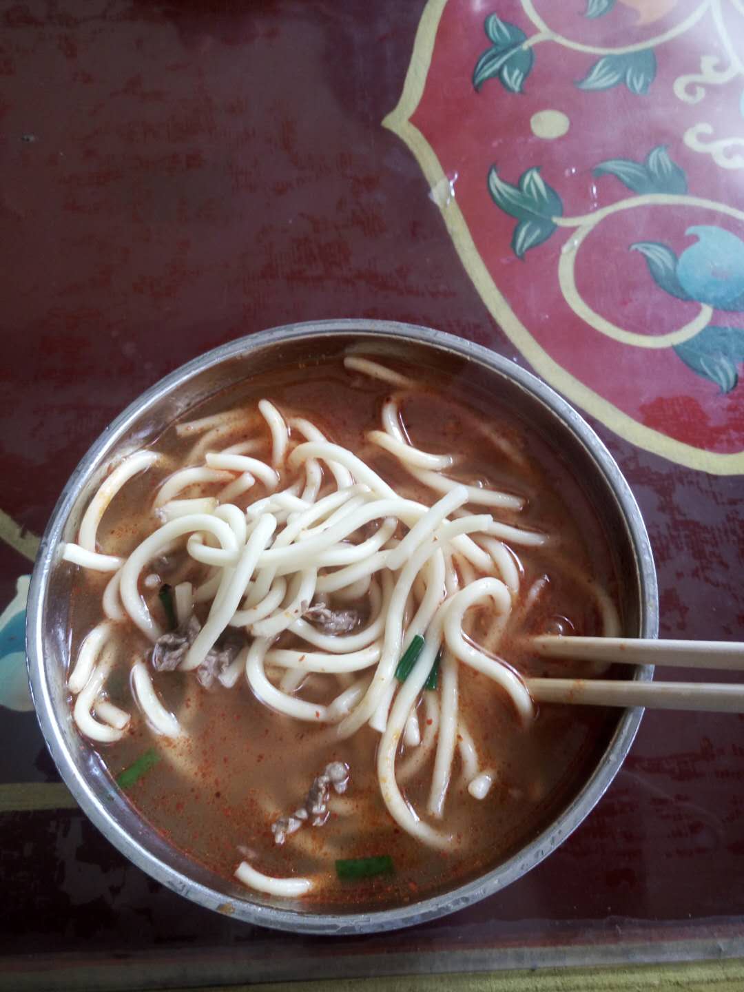 点了几碗藏面本想尝尝,可谁知汤里什么味都没有,而且面条又硬又不劲道,大家变成囫囵吃了一些