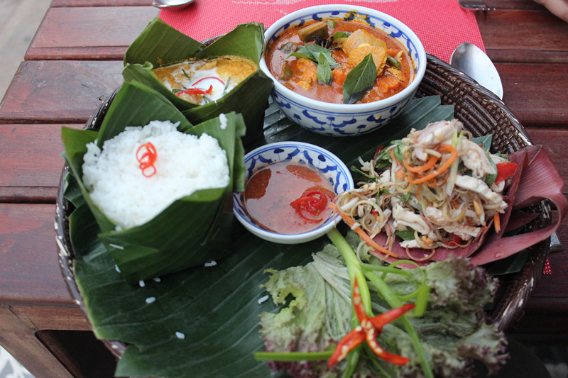 最后一顿晚餐了,前一天晚上还以为最后一顿,结果又多了一顿,既然有时间自然要吃,放了菜单选了二份套餐! 点了优惠啤酒,2杯1刀!套餐里面有米饭还有咖喱肉,串串,冬阴功汤等,东西看着品种蛮多,量还可以,味道也OK!