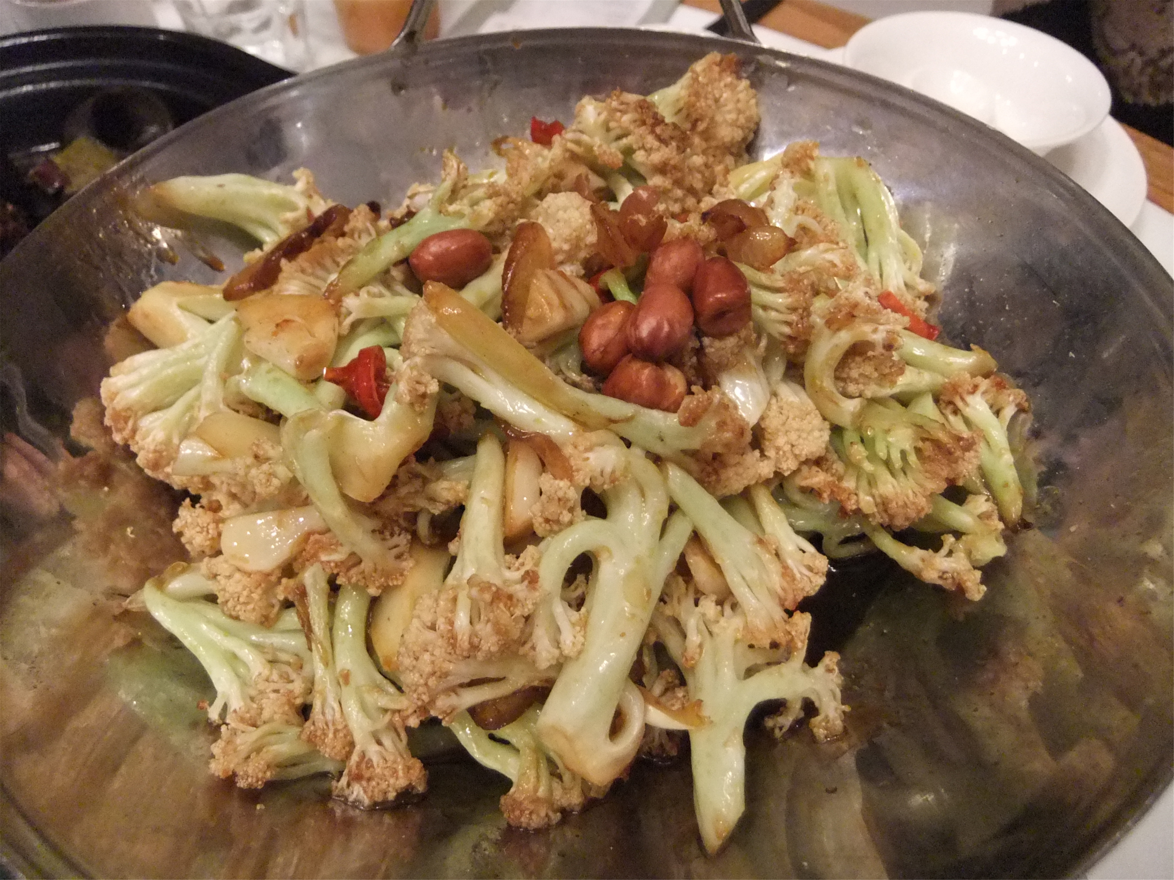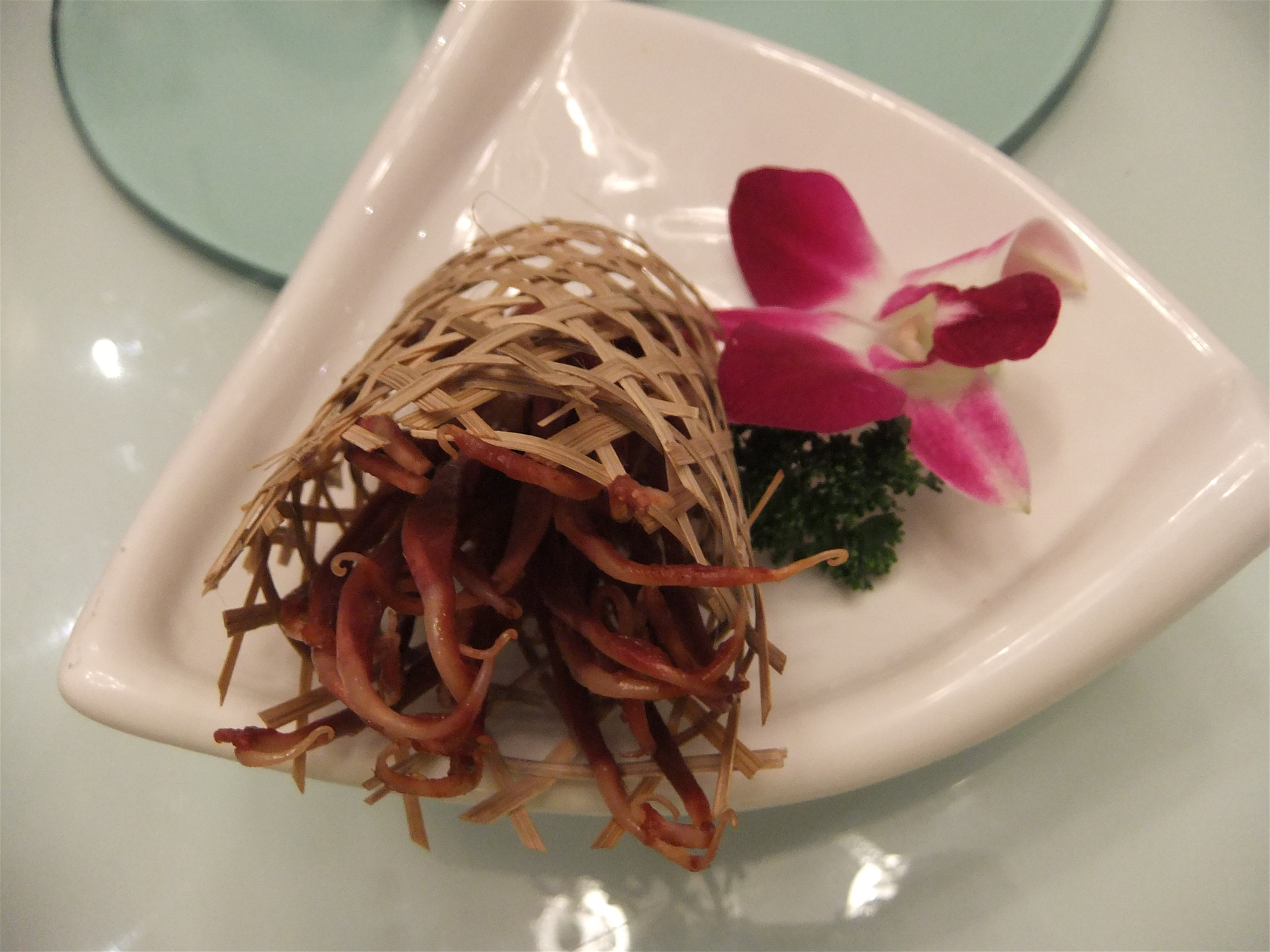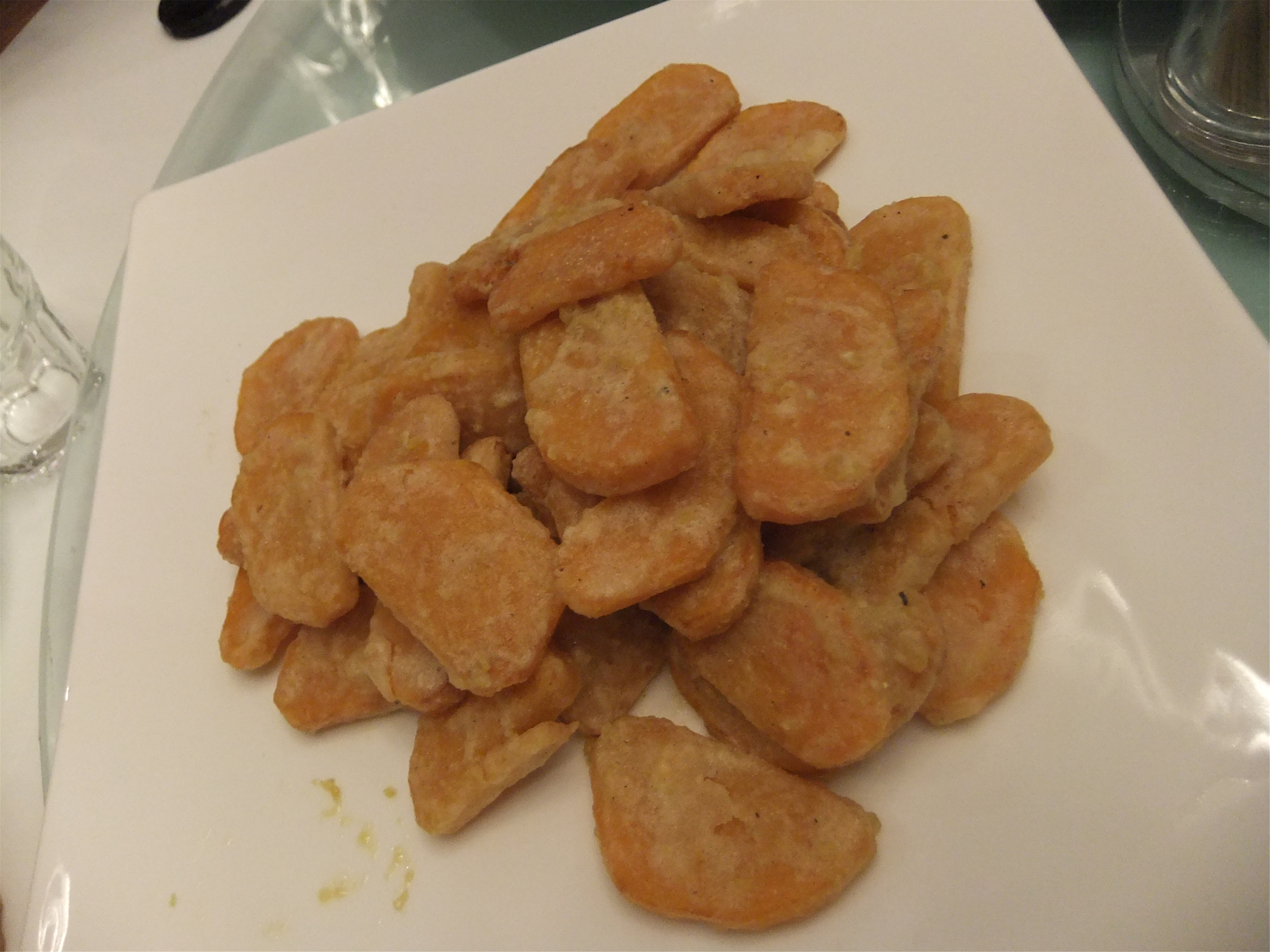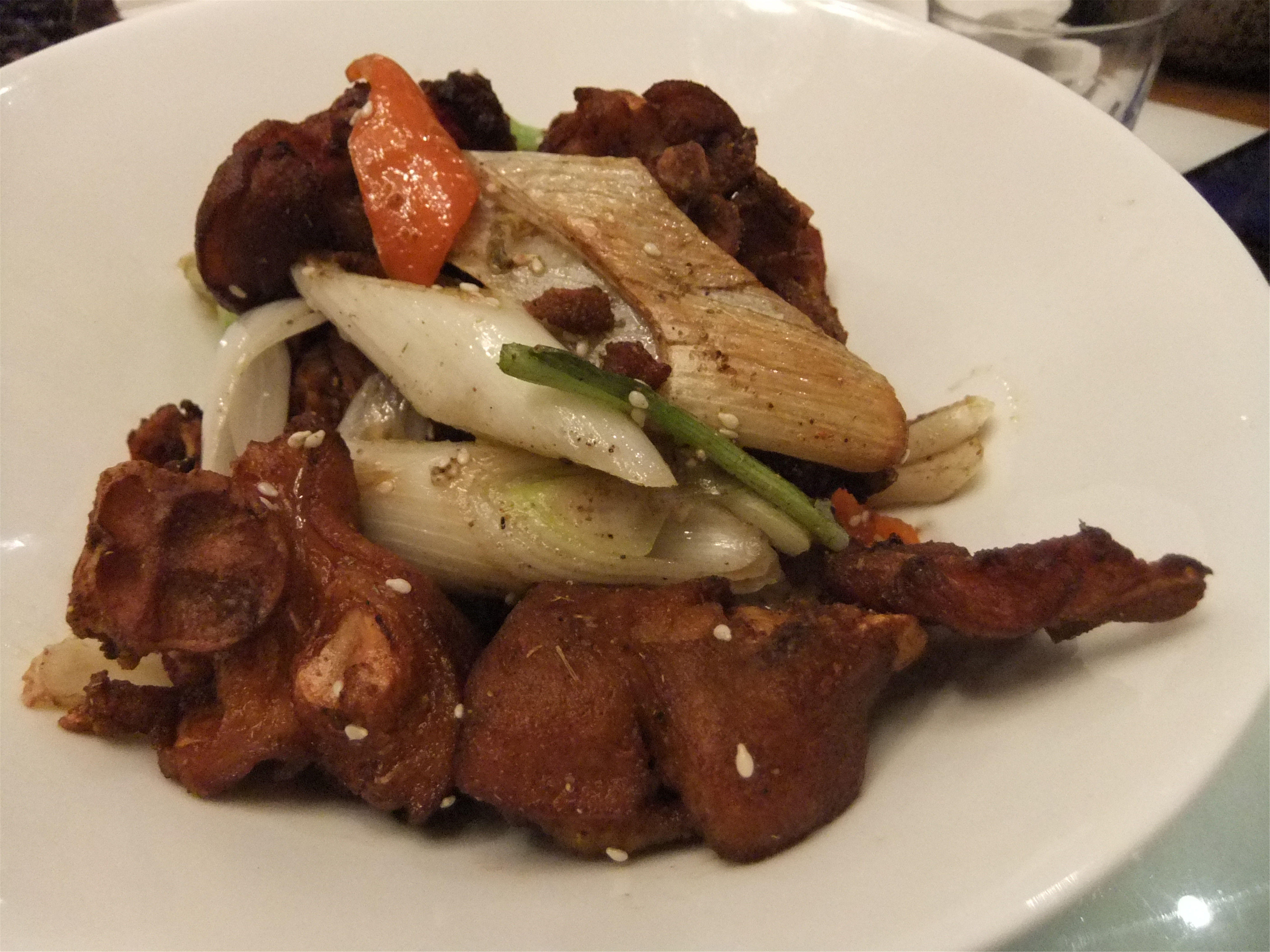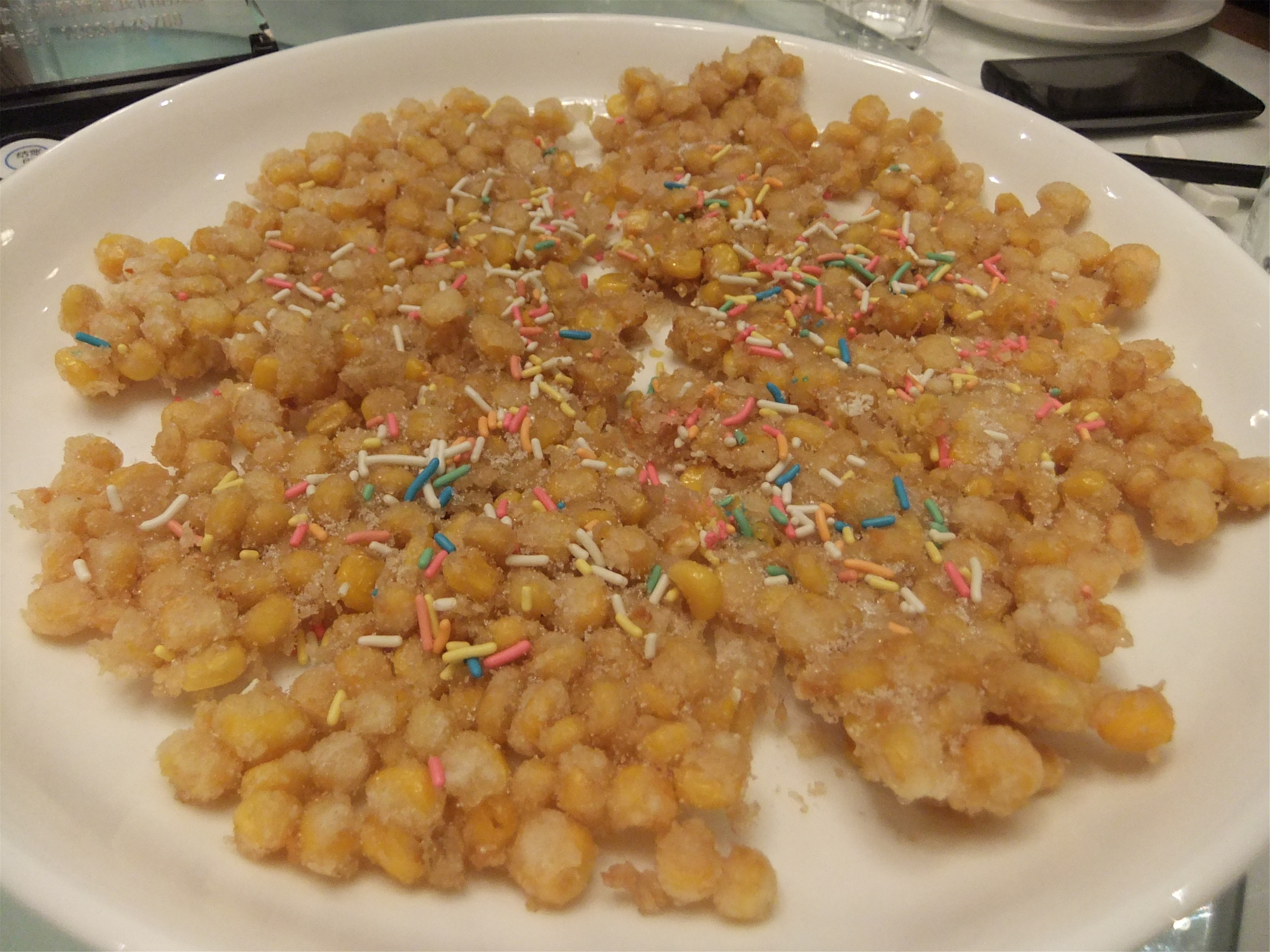 田螺塞肉煲,和家里的口感不一样,还是更加喜欢家里的口味! 金牌玉米烙,玉米上面撒上少许彩色糖粒,吃口偏甜! 腊鸭舌,不知道什么时候开始愿意接受这菜了,口感一般! 蛋黄南瓜,外面挂了一沉蛋黄酱。与南瓜的搭配比锅巴好! 干锅鱿鱼,鱿鱼用干锅烹饪,吃口不错!