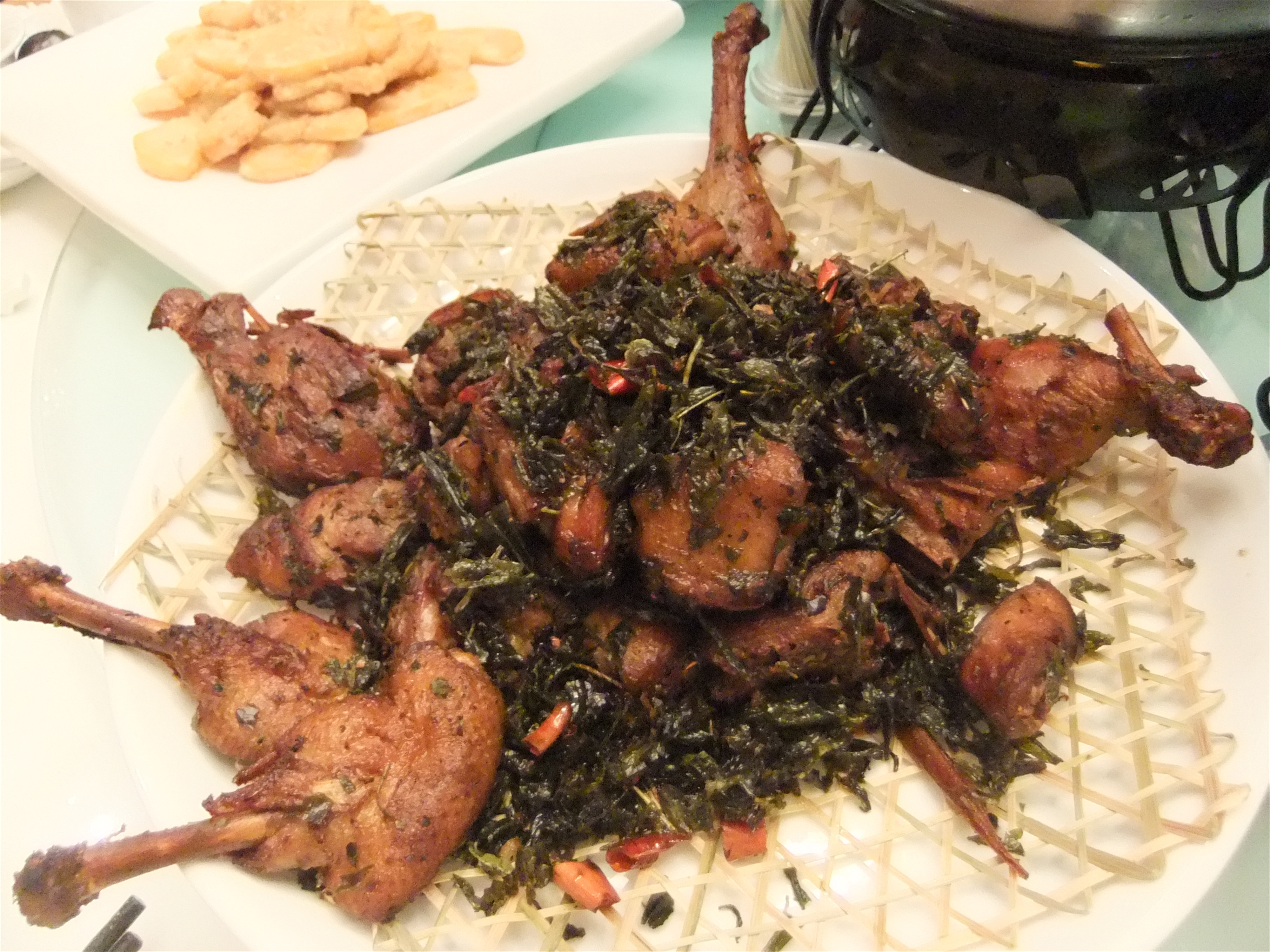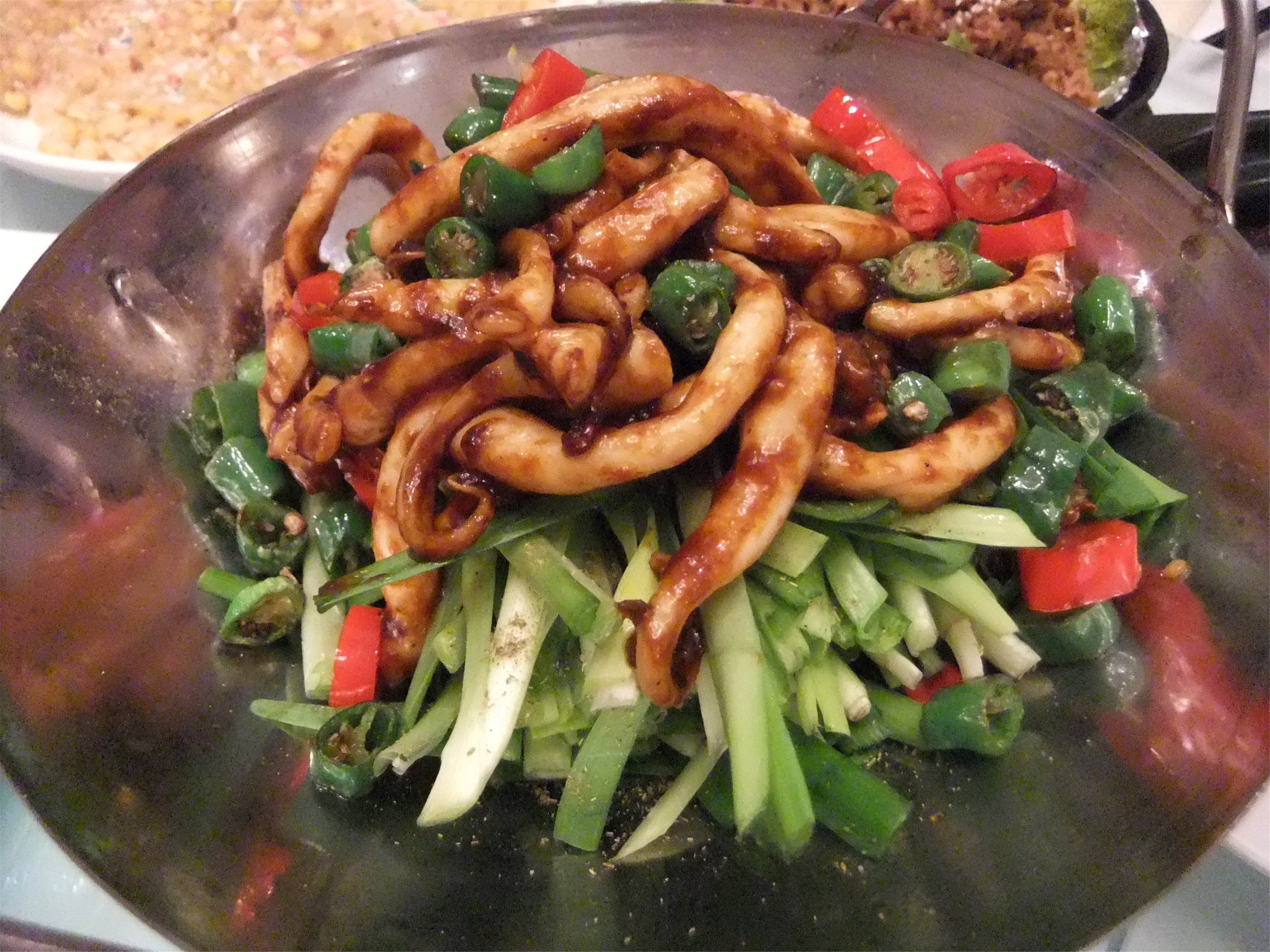 田螺塞肉煲,和家里的口感不一样,还是更加喜欢家里的口味! 干锅鱿鱼,鱿鱼用干锅烹饪,吃口不错