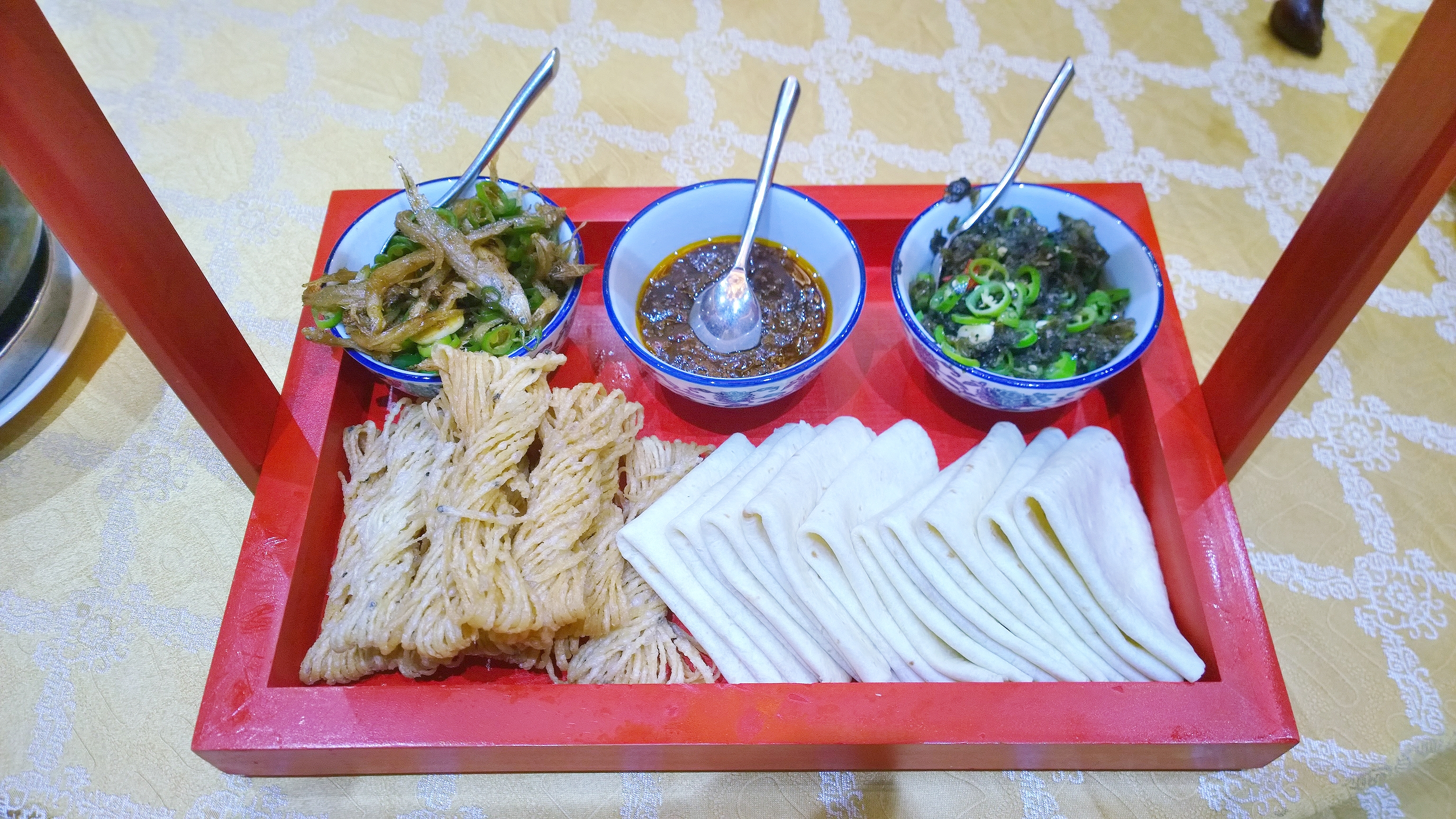 云南北路这家徽菜还不错,原来是开了很多年的郭氏私房菜,现在更名为嘉品美食苑。酸菜牛肉还是第一次吃,很爽口的搭配。豆花鲜嫩又不松弛,虫草花鸽子汤也很鲜美。黄山地区特有的石蛙做成香辣味特别赞。卷饼三样喜欢里面的淮安馓子,这道菜也是传统正餐里最常见的。臭鳜鱼是徽菜特色,只可惜我不太喜欢这种风味~菜色还是很好看的
