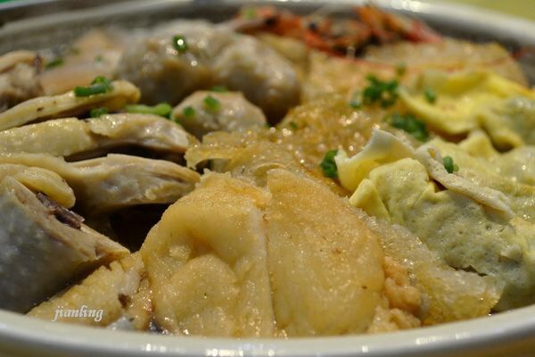 为了来这里,呵呵,一向自认活地图的我今天可是出足洋腔了,地铁到了世纪大道站出来居然搞不清东南西北咯一刚,天好黑,下雷雨,偶居然很雷人的找了四十分钟才找到车站哦。。。 急急急,赶到,奔上楼,领导在呀,大家居然饿着肚子在等偶哦,活活的等了半个小时呀,对不起,对不起,可爱的姑娘们大家对不起!快拍照吧。。。 冷菜:南汇散养鸡 有一个吧,颜色金黄漂亮,吃一块,很嫩的。 五香素鸡 好象自己家做的,厚厚的,很软,吸足了汁水,很入味的。 日式烤鳗 好漂亮哦,小姑娘最最喜欢了,所以,等偶擦了擦汗水低头一看,呵呵,成空盘了。 木瓜船水果色拉 满好看的,甜甜酸酸的,木瓜船里装了很多椰果之类的,偶好象忘吃木瓜了耶。 香拌土鸡蛋干 这个比想象中的好吃,很清口,吃了不少。哈哈,偶是食肉滴。。。 珍珠紫芋 好小,好好玩的哦,一口一个刚刚好。 卤水大拼 么想到,做本帮菜的店家居然也能把卤水做到这么好,很嫩,很入味的,喜欢。 热菜:海鲜面疙瘩 颜色好好看的,白白的汤,红红绿绿的蔬菜,面疙瘩偶尔吃吃也很香的。 上海元宝虾 这个可是正宗的本帮菜,很入味,甜甜的口味很喜欢。 本地蒸三鲜 这个菜嘛。。。呵呵,好象是以前本地上海人过年吃的菜,蛋饺、咸肉、肉皮、虾等等的一大堆。 茶树菇牛柳 茶树菇是新鲜的,牛柳很嫩,做的浓油出酱,蛮入味的。 竹筒香扣肉 最最值得偶推荐的,就是这个香扣肉,它家的香扣肉跟偶以前吃过的做法有所不同,那肉墩的刚刚好,不是太烂还有点嚼头的,吃起来感觉很香但又不会老,也不嵌牙,因为它家已经很细心的把肉纹横切断了。