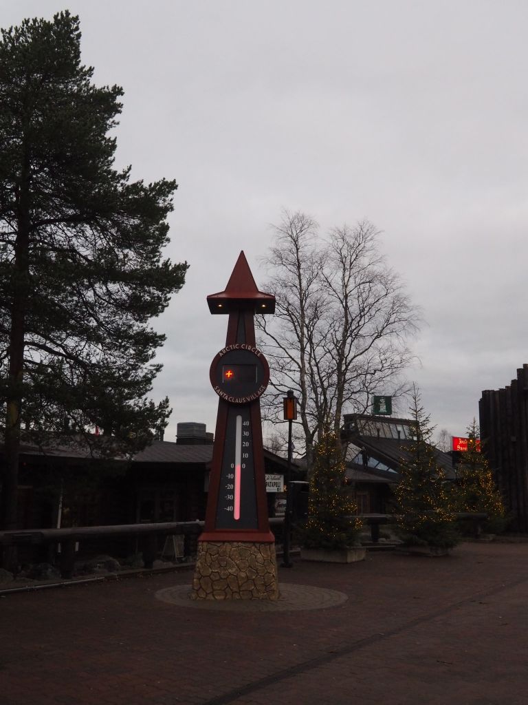 有三个地方可以拍北极圈, 两个在户外,一个在室内,在室内是游客中心前面,游客中心可以买北极圈证书。另外两个地方,一段比较短在圣诞老人邮局旁边,另一段比较长的在圣诞老人办公司前面,个人认为这个地方拍照位置佳,旁边还有一个温度计可以一起拍进去,很有意义。