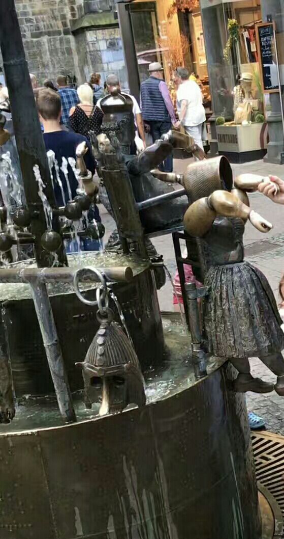 而且非常栩栩如生。是个非常有特色的地方,好像只有亚琛市才有这么有趣的地方,小朋友都很喜欢之前去了很多德国城市,但是从来没碰见,就在这市政厅广场前面。是个非常有特色的地方,好像只有亚琛市才有这么有趣的地方,小朋友都很喜欢。这个喷泉的塑像是用青铜做的。而且非常栩栩如生。