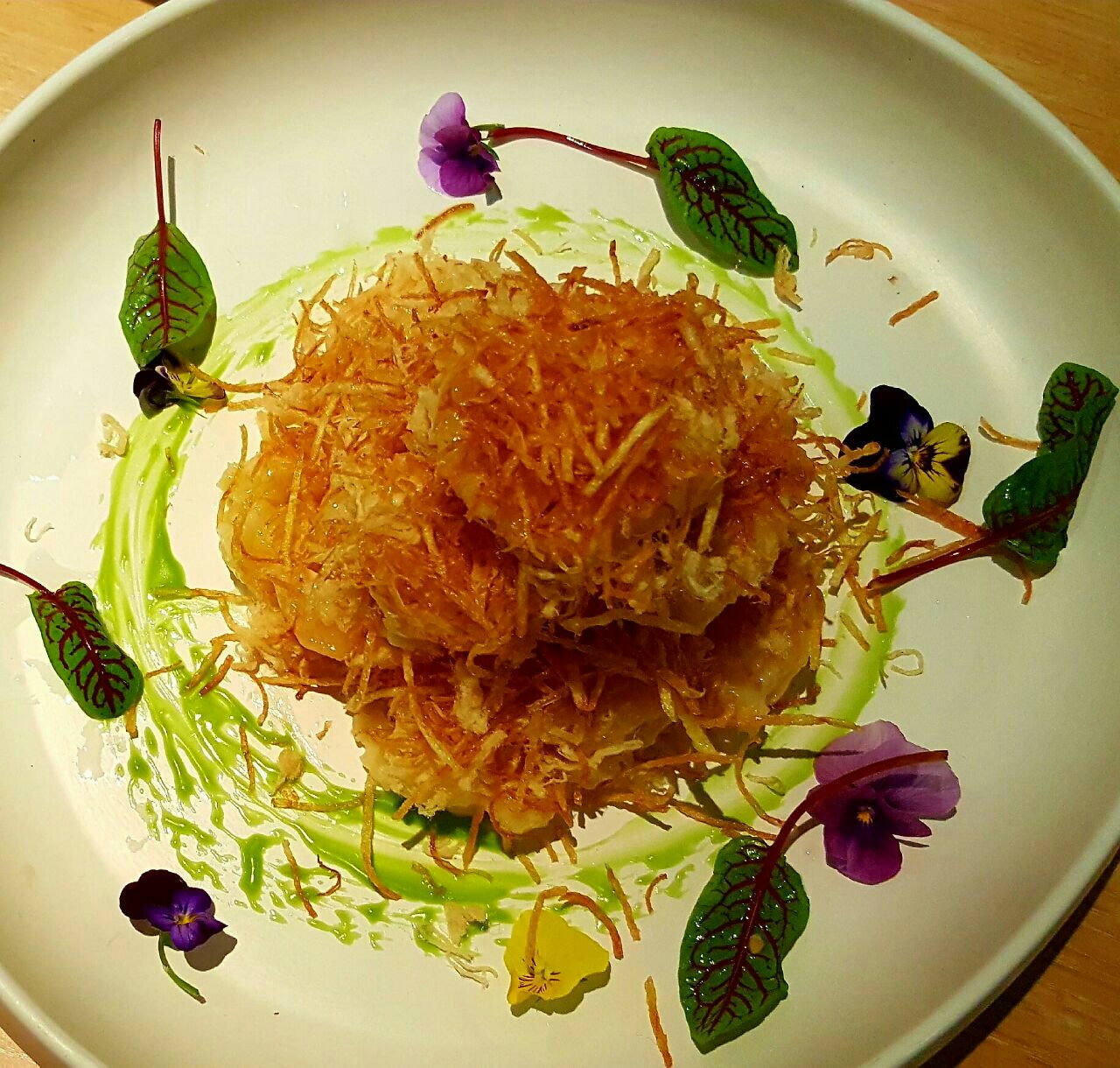 『莎莎Salsa•花影』 一直被模仿,从未被超越,主打京津菜,创意菜分子料理等。这家经典招牌菜,真的很不错,经久不衰,菜品一直保持最棒的水准。 招牌紫薯南瓜沙拉 两种沙拉泥颜色搭配非常棒,鲜明的跳色对比,摆盘也很精美,南瓜泥紫薯泥都很细腻,一点筋都没有,杏仁片的点缀既美观又添加了一些坚果香气。 陕西回族麻酱凉皮 双色凉皮,绿豆面皮和白面皮,洒满花生碎和白芝麻,根据自己的喜好淋上炸好的辣椒油,辣椒油很香,却不是很辣。 芥香虾球 虽然很多餐厅都有这道菜,这里的芥末虾球,却做出了新高度,大虾超大,每一个都加入了肉松,土豆丝炸酥后的碎屑,放在虾球上做点缀,脆脆的很好吃。 新莎莎排骨 虽然是排骨但是肉肉也超多,紧贴骨头的肉是最香的,肉质软烂不柴,很好脱骨,很入味,厨师还搭配了蘸料。 椒盐蘑菇 蘑菇超级嫩,蘸上孜然芝麻蘸料,简直一绝。 川府麻香水煮鱼 四川空运来的麻椒,味道很正点,麻的很过瘾,鱼肉很嫩,没有刺,豆芽菜,鲜笋,脆爽可口。 精品烤鸭 中西合并,两种吃法,可以夹春饼也可以夹小汉堡,鸭皮很酥脆,秘制蒜泥,特别解腻,春饼放在小蒸笼里,显得格外精致。 莎莎经典黑桃华夫 华夫甜品的鼻祖,从未吃到这样好吃的奶油霜,很Q,华夫饼很夯实,用料足,蛋黄的香气扑鼻。黑樱桃,晶莹剔透,仿佛黑珍珠一般。这道甜品,无可挑剔。 地址 凌宾路奥城商业广场8号楼彩柒汇生活广场2层
