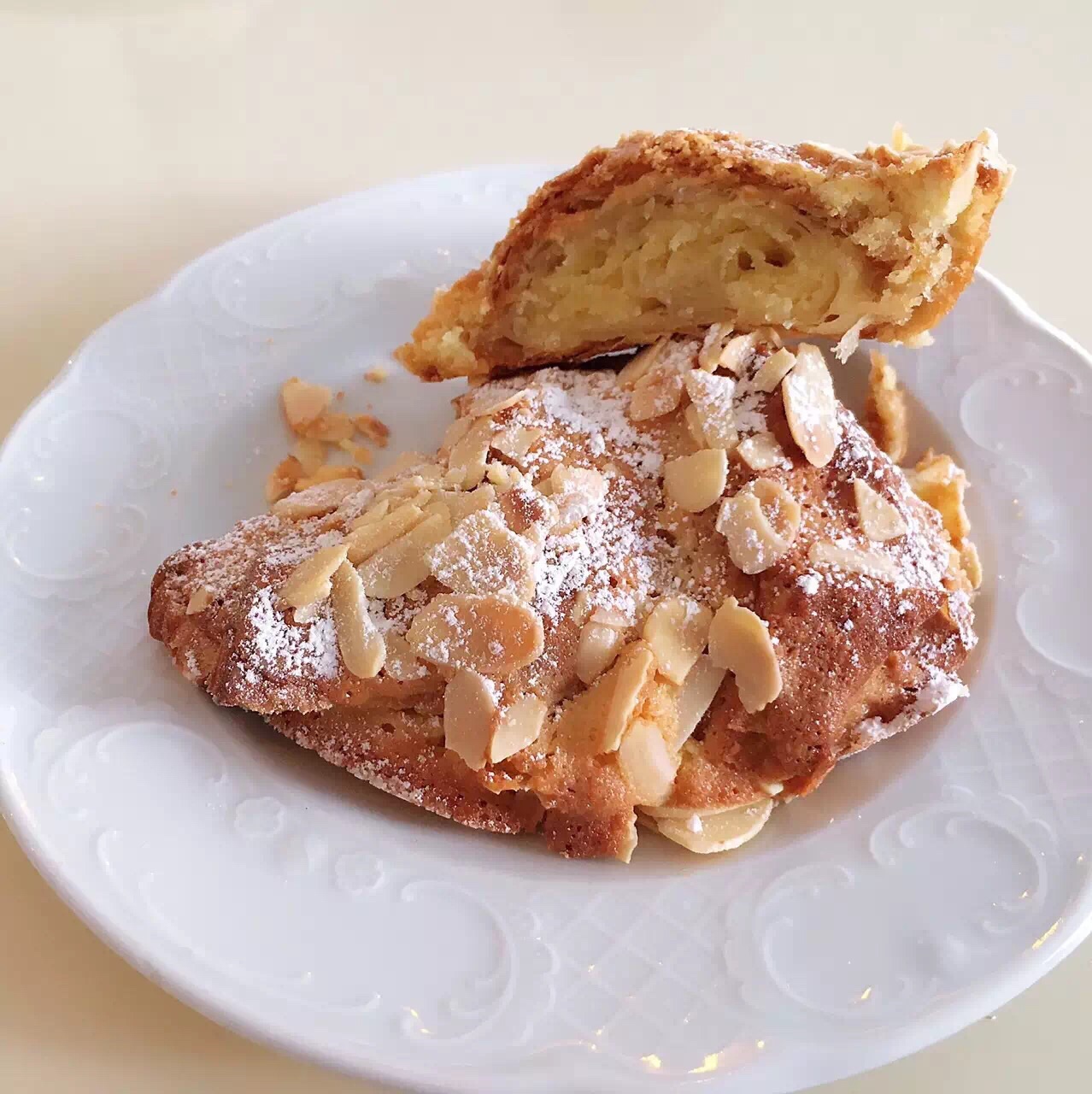 对半切开,是一顿早餐外加一顿宵夜的量。新加坡最好吃的可颂!绵软的内层和酥脆的外壳,用微波炉加热更好吃