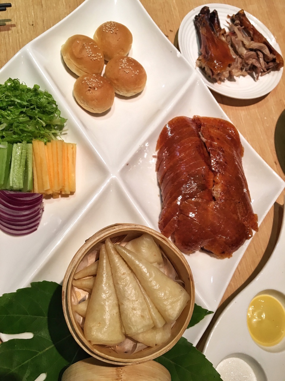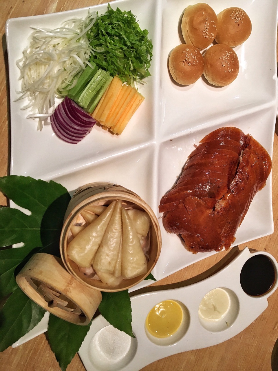 非常实在,好多花椒让整个水煮鱼吃起来麻辣鲜香 精品烤鸭中西式两吃法,既有春饼又有小面包,莎莎的...