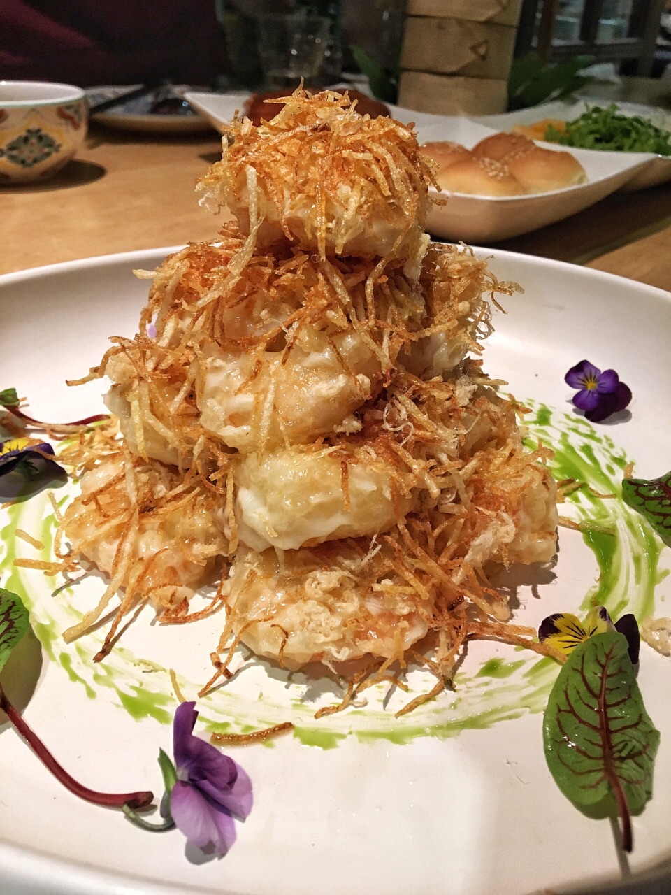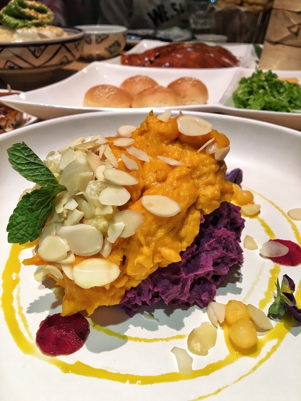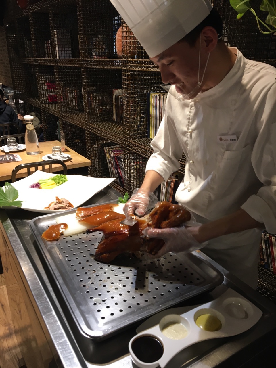 莎莎有五年了,从开始他家刚营业的时候,就喜欢那几道经典菜!!除了样子、摆盘稍微变了一些,味道还是老味道~这是从心里很开心的 芥香虾球虾线处理非常到位,整颗一只大大的,咬起来很Q弹,店家自调的芥黄酱,配上肉松、炸的脆脆的小丝条,非行完美~ 陕西回族麻酱凉皮两种颜色的面皮搭配,绿色白色,上面撒满满满的白芝麻和花生碎,店家独制的辣油,上面漂着满满一层的白芝麻。把辣油淋到面皮上,搅拌均匀,凉皮口感扎实,配上面筋和豆芽菜,爽口麻香~ 招牌紫薯南瓜沙拉紫薯泥和南瓜泥的碰撞,最上面撒上烤好的杏仁片,它的摆盘特别喜欢,三色堇,还有几粒小黄豆,都是好看好吃的 新莎莎排骨这个应该是在原有基础上再次改良,肉质更嫩!而且每跟边上都有脆骨,说明店家选的排骨也非常到位!甜甜的酱汁配上排骨,好香嫩 川府麻香水煮鱼这个真的是很大一盆,非常实在,好多花椒让整个水煮鱼吃起来麻辣鲜香 精品烤鸭中西式两吃法,既有春饼又有小面包,莎莎的烤鸭一定要点,皮烤的油脂储存的刚刚好,不会油腻又会解馋,四种酱料,甜面酱、蒜酱、芥黄酱、白糖(专门配烤鸭皮的),配菜有哈密瓜、黄瓜、葱、生菜丝,把它们和抹了甜面酱的烤鸭裹在一起,真的太香了!!!对了,点烤鸭留下的烤鸭架子,可以让店家帮忙做汤哦~ 椒盐蘑菇他家很经典的一道菜,蘑菇润润的,蘸上椒盐粉,很过瘾的!一口一口停不下来! 黑樱桃华夫也是他家非常经典必点甜品!华夫饼QQ润润的,上面的卡仕达酱,腌渍好的黑樱桃,每一口吃起来都很饱满,强烈推荐