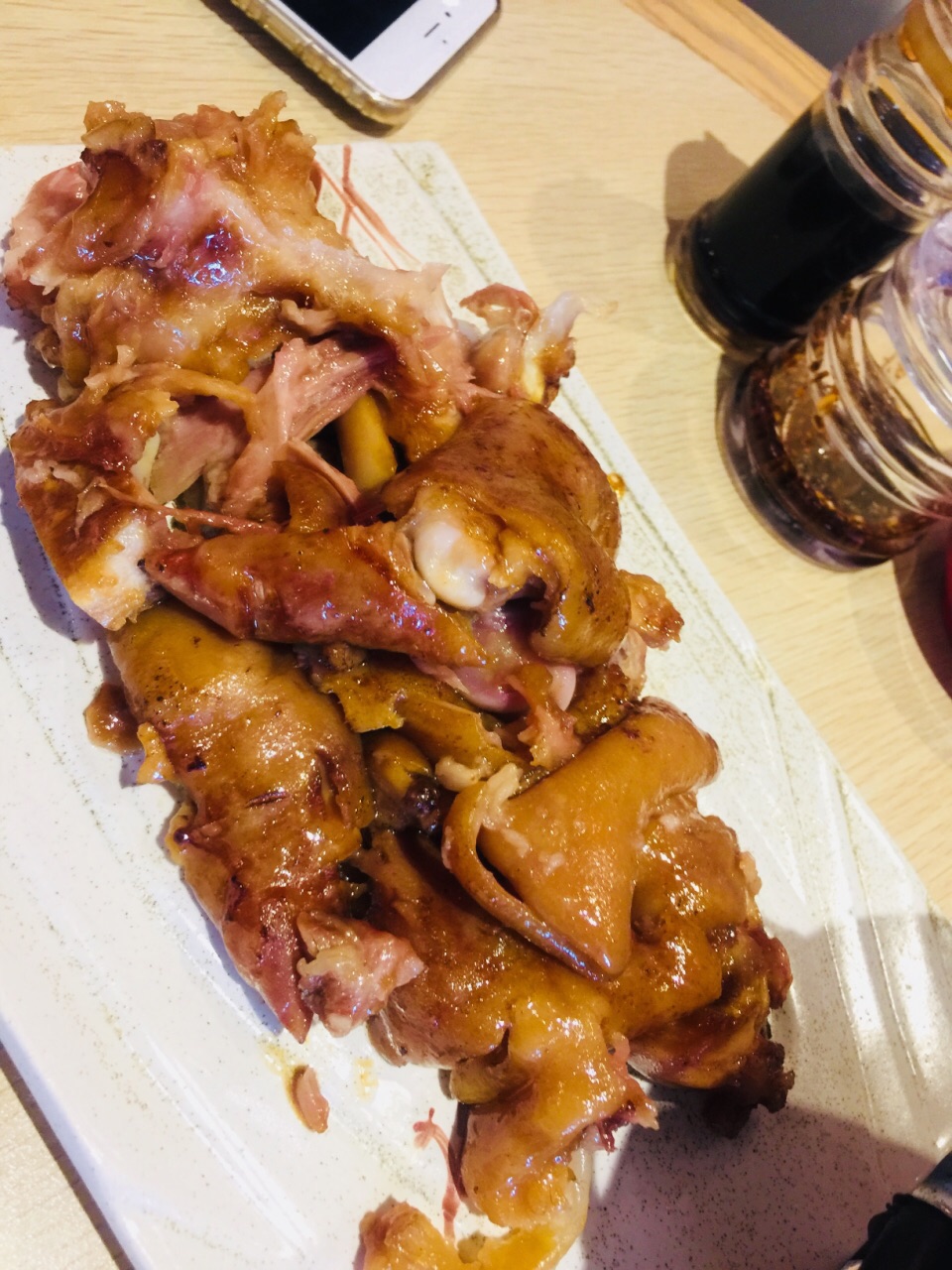 工作日的中午关东小磨人特别多,有时候还要排队等,这家都吃了几次了,性价比算高的,味道也不错。 水饺有多种味道,芹菜猪肉、白菜猪肉、韭菜鸡蛋啦,这次的西葫芦鸡蛋水饺也好吃。 锅包肉,每块锅包肉都很大,外脆特甜,里面的猪头新鲜香喷喷。 秘制猪蹄,嫩香,感觉胶原蛋白满满的。 鸡胗豆腐皮,味浓。 之前吃过的大酱骨、地三鲜都有特色。 大悦城的周边写字楼多,还有个长风公园,中午吃饭生意怎么会不好。 没有Wi-Fi,餐巾纸要收费的。
