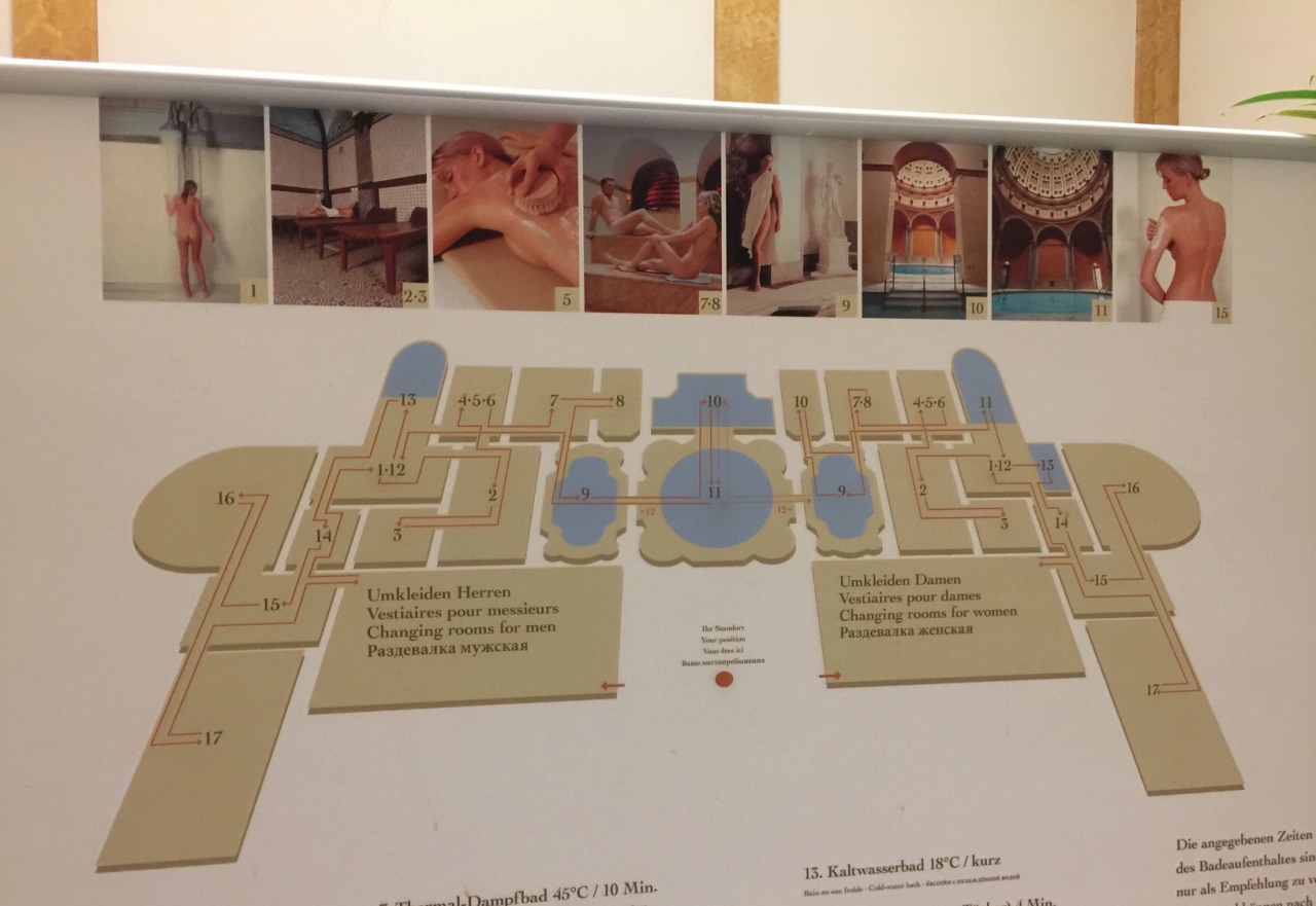 不用担心17个步骤记不住,都有标在墙上的,浴场服务人员也很热情,知道我们是第一次来后还很耐心的...进入浴场后,不用担心17个步骤记不住,都有标在墙上的,浴场服务人员也很热情,知道我们是第一次来后还很耐心的讲解,基本流程就是先冲后蒸再泡,有不同温度的桑拿房和温泉池,按步骤来真的很舒服!