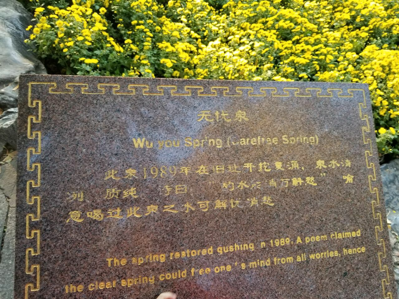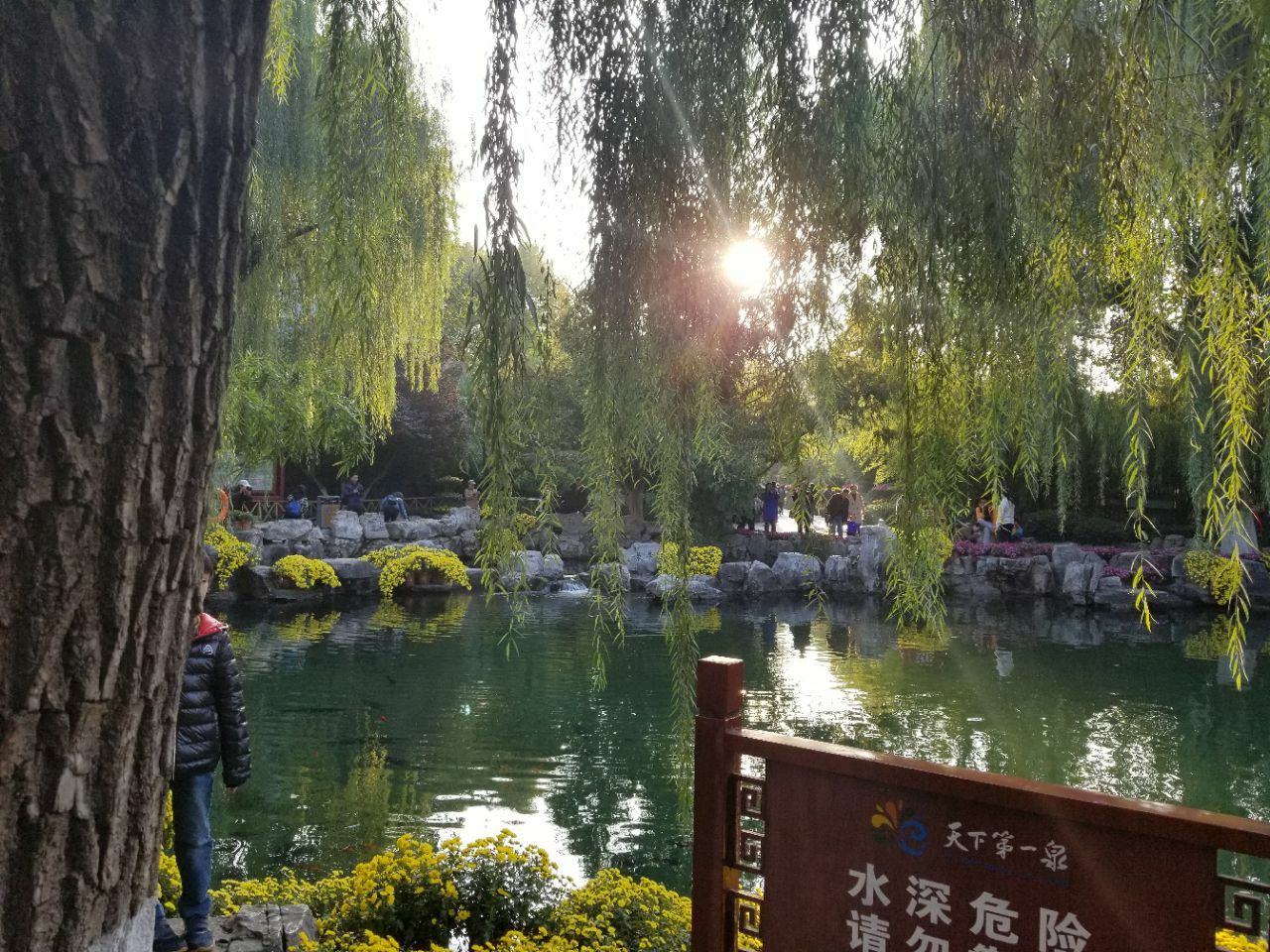 景色好美,与菊展交晖相应。在趵突泉公园,北连趵突泉位于趵突泉公园南的无忧泉,泉边绿树成荫,泉池用不规则自然石砌就,因泉池较深,大股的泉水从池底涌出后,在泉面激起层层涟纹。在趵突泉公园,北连趵突泉。景色好美,与菊展交晖相应