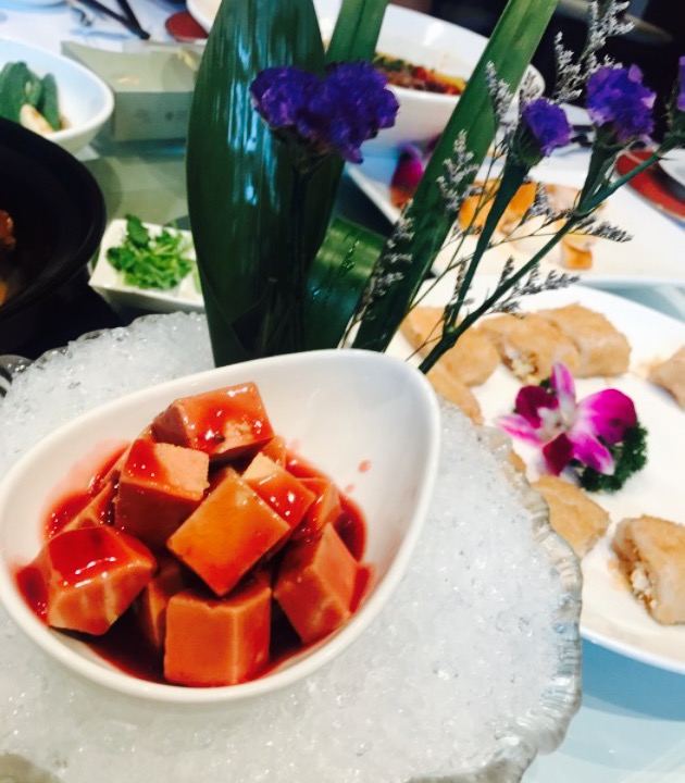 地址在金紫槿酒店三楼,只是因为修地铁封路,开车太难到了,转几个圈。和朋友两个女生来吃,招待的经理总是让我们点很多,不想其他地方的服务生会主动提醒这些份量够吃了,所以这样的服务就有点像美发店的推销了。还有不得不提的烧鹅,这份量估计就四分之一,100多一份,我也是醉了,经理推介的时候忘记问了。就觉得豉油皇鸡脚好吃,其它点的真觉得一般。