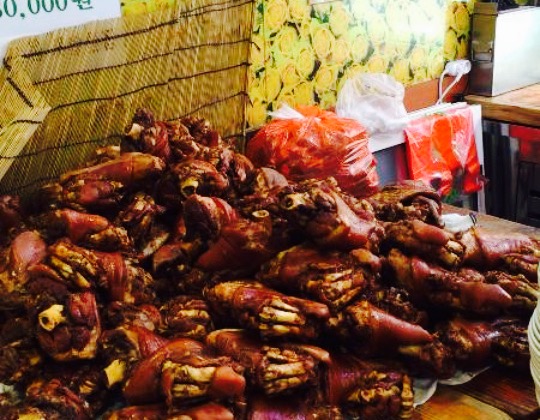 这家餐馆顾客数量非常多。我们在这里吃的很开心。菜里面会有一些芥末,还有很多蔬菜,肉也比较多。本来想点一个小盘子大概30000韩元,但我们有三个人,女服务员建议我们换乘了35000韩元的。我家人点了猪肉和沙拉盘,这里有一排卖猪蹄肉的餐馆。