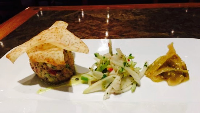 网友2017-07-09最令人印象深刻的就是这里的共享大盘食物,我的晚餐是鲷鱼,味道和分量都是非常令人的最令人印象深刻的就是这里的共享大盘食物,我的晚餐是鲷鱼,味道和分量都是非常令人的。我们是来庆祝父亲的第七十九岁生日的,他们甚至把他的名字和年龄放在蛋糕上,他非常高兴。