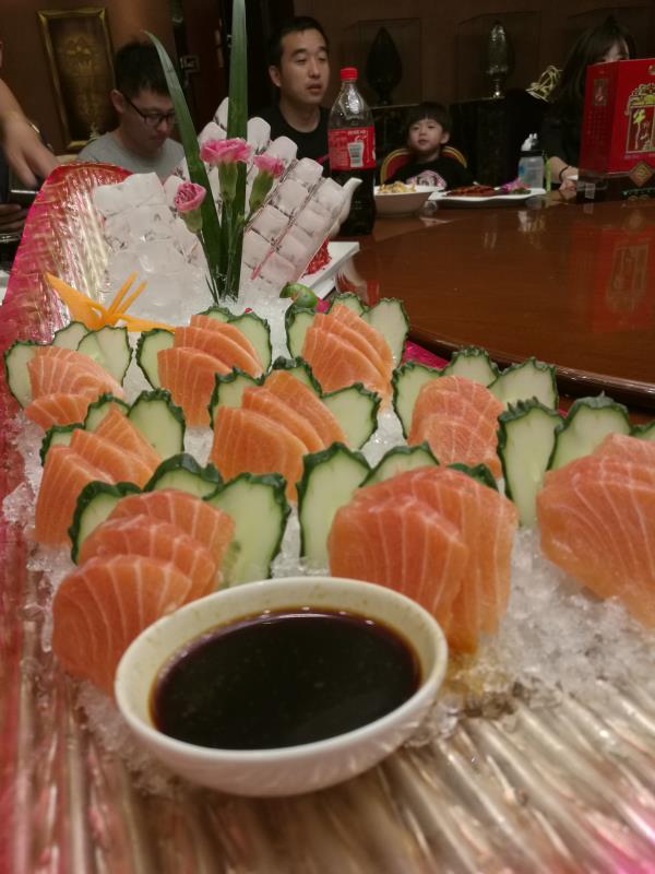 【位置】新华西道上,临街非常显眼,地面有不少停车位,万一没地方了旁边也可以停。公交的话信息大厦站最近,好几辆公交途径。 【环境】从招牌到大堂都非常大气敞亮,内部装修红黄色系为主,处处透着中国风。大厅非常宽敞,餐位众多,楼上有几个包间,环境可以说是有点奢华了,很棒。 【服务】朋友聚会,提前预定的包间,房间早早准备好,服务很周到,点菜时也可以提供一些建议。包间内有专职服务员和吧台,随叫随到,贴心舒适。 【菜品】因为人多,所以差不多这里不错的菜品都吃到了,即使会有那么几样菜品不够精细或地道,但对于不是那么讲究的多数食客来说,都是绝对够得上一个大大的赞的了。几乎每一样菜品在摆盘上都很讲究,色彩上光鲜亮丽,一看就有食欲。菜色种类也非常丰富,简直就没有这里做不了的菜,从三文鱼刺身、烤鱼等海产品,到羊排、鸭肉、肘子、排骨,再到相对家常一些的素菜,都很好吃。 【价格】丰俭由您,简单的人均50-60也能吃的很不错,爱吃海鲜的人均100出头也差不多了。