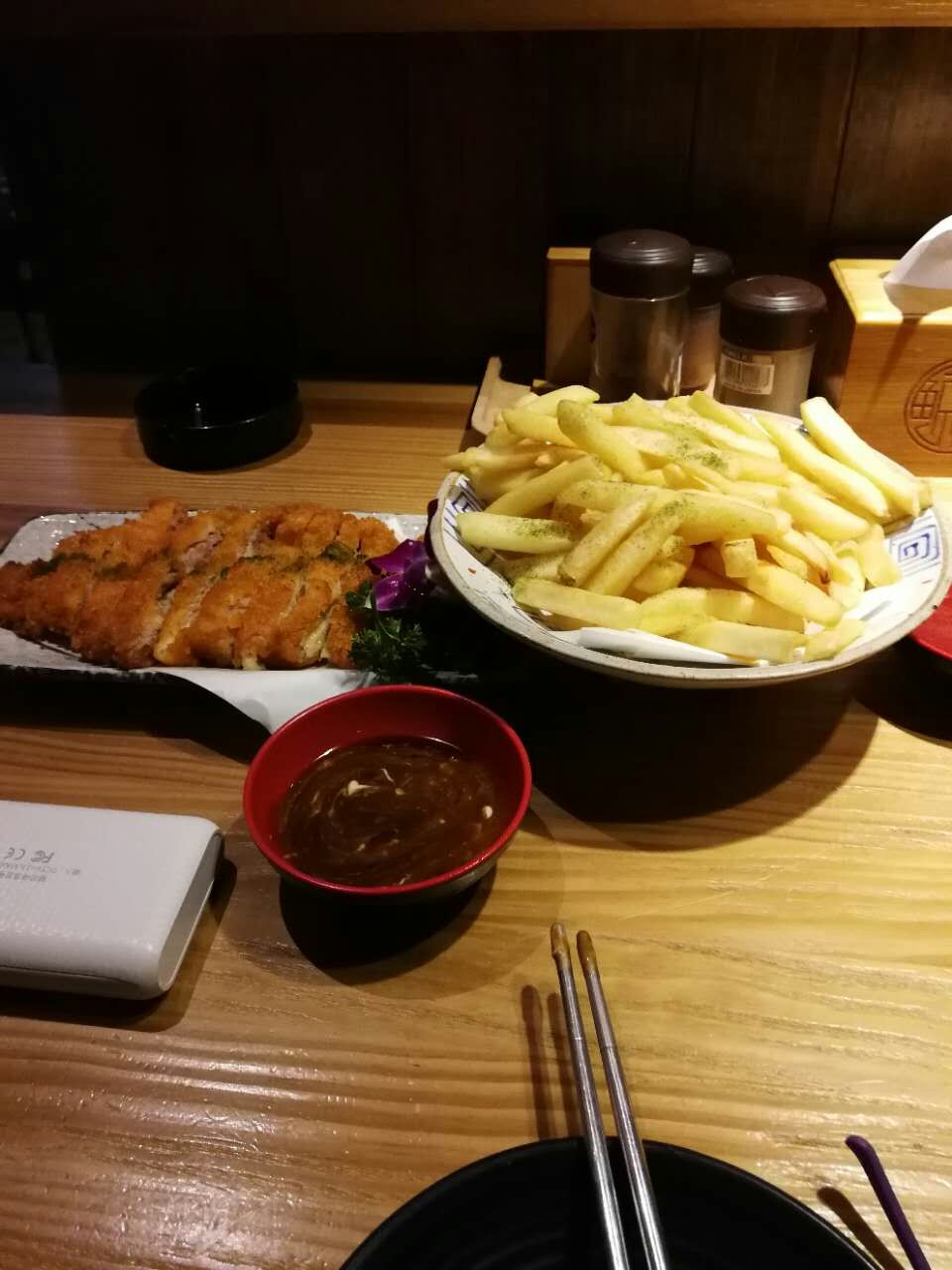 正宗日式烤肉,材料新鲜,排风系统棒棒的不会很大油烟。豚骨拉面,冠军牛肉饭也都棒棒的。龙虾沙拉一小碗,微淡芥末味。芝士鸡排,猪排都有配酱,薯条18很大一份。有时下班懒得做饭了就来点一份饭吃,就是太火爆会排队