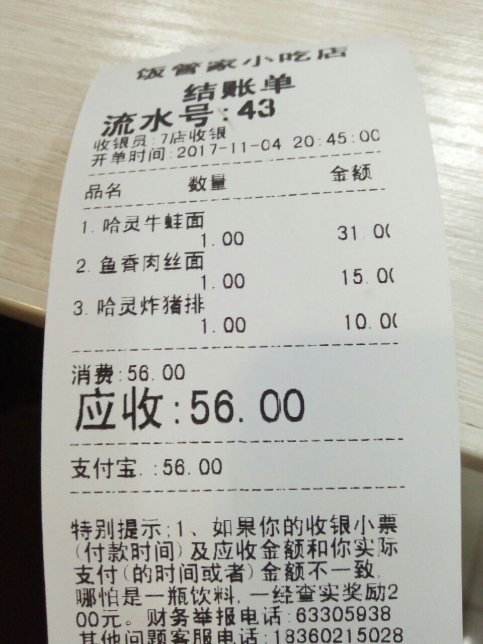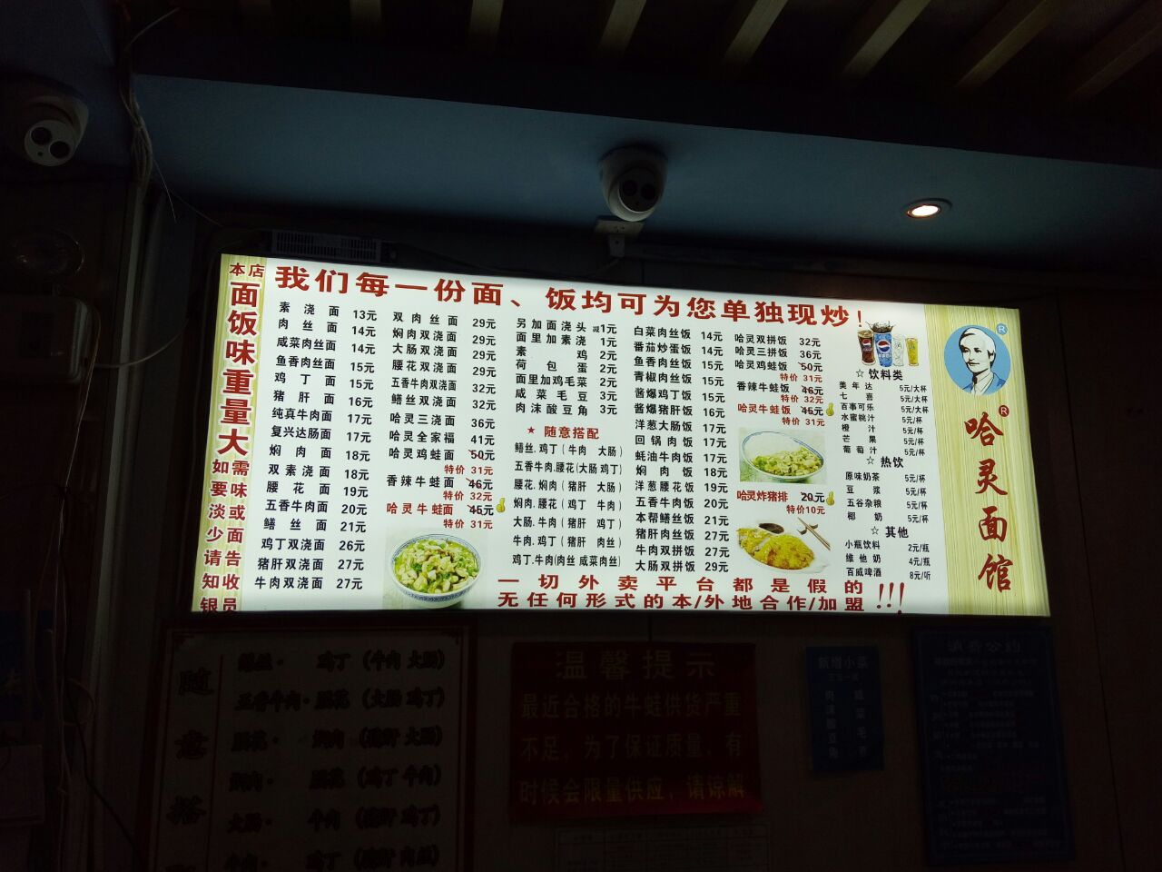 不是第一次去哈灵面馆,但是很多年没有去了,确实也是怀念了。 上周六桌游结束后去的,点单都八点三科了,真正吃上这顿晚饭都9点了。 店里生意依旧好,牛蛙面特价31,炸猪排10元,发朋友圈可以送冰红茶,但是我们带了50岚进去喝的,不想要冰红茶了,就没有发。 牛蛙和鱼香肉丝上来都是扑扑满,下次两个人点一份吧!
