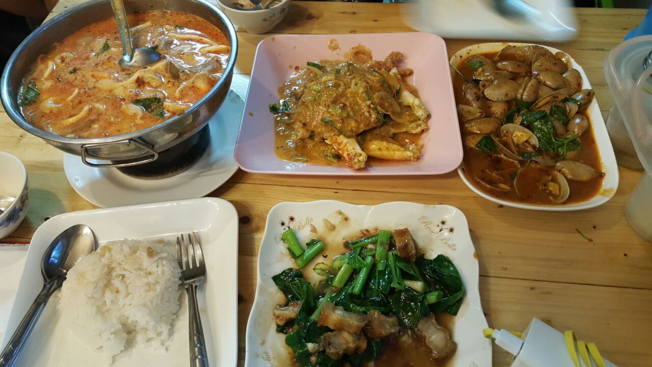 水上市场旁边的餐馆都很便宜,而且都很好吃。店里的座位全都坐满了,而且有客人还在等位这家是市场旁边的一家餐馆。中午的时候生意特别好。店里的座位全都坐满了,而且有客人还在等位。水上市场旁边的餐馆都很便宜,而且都很好吃。