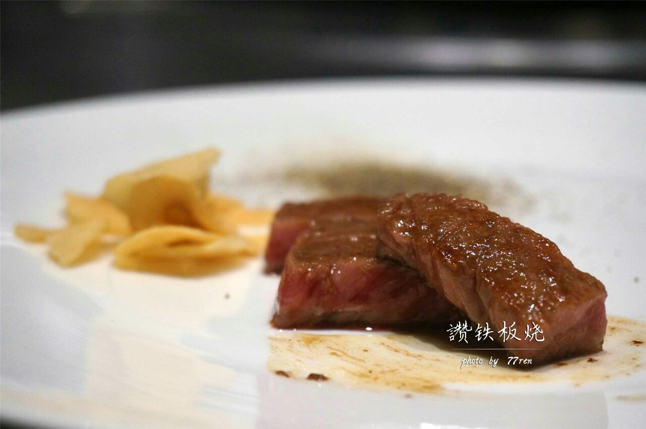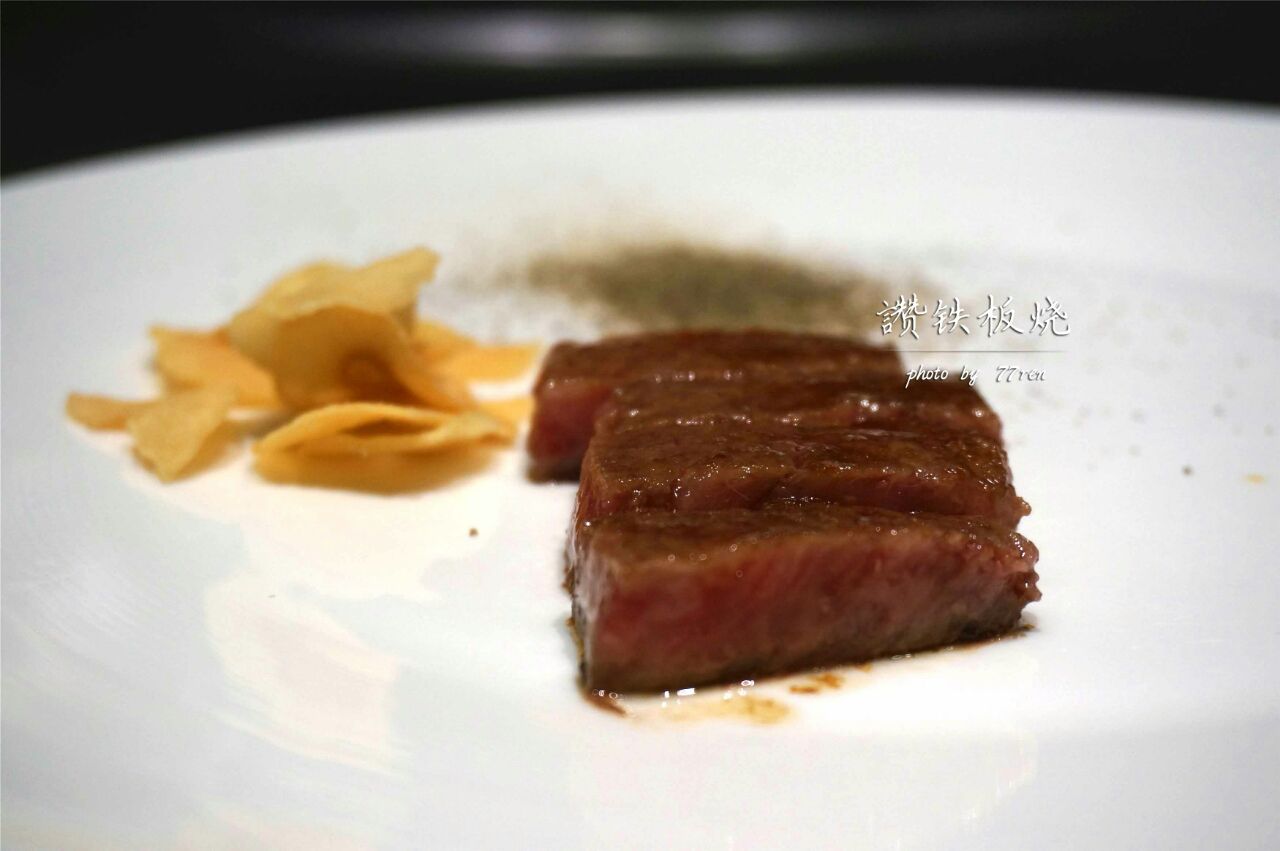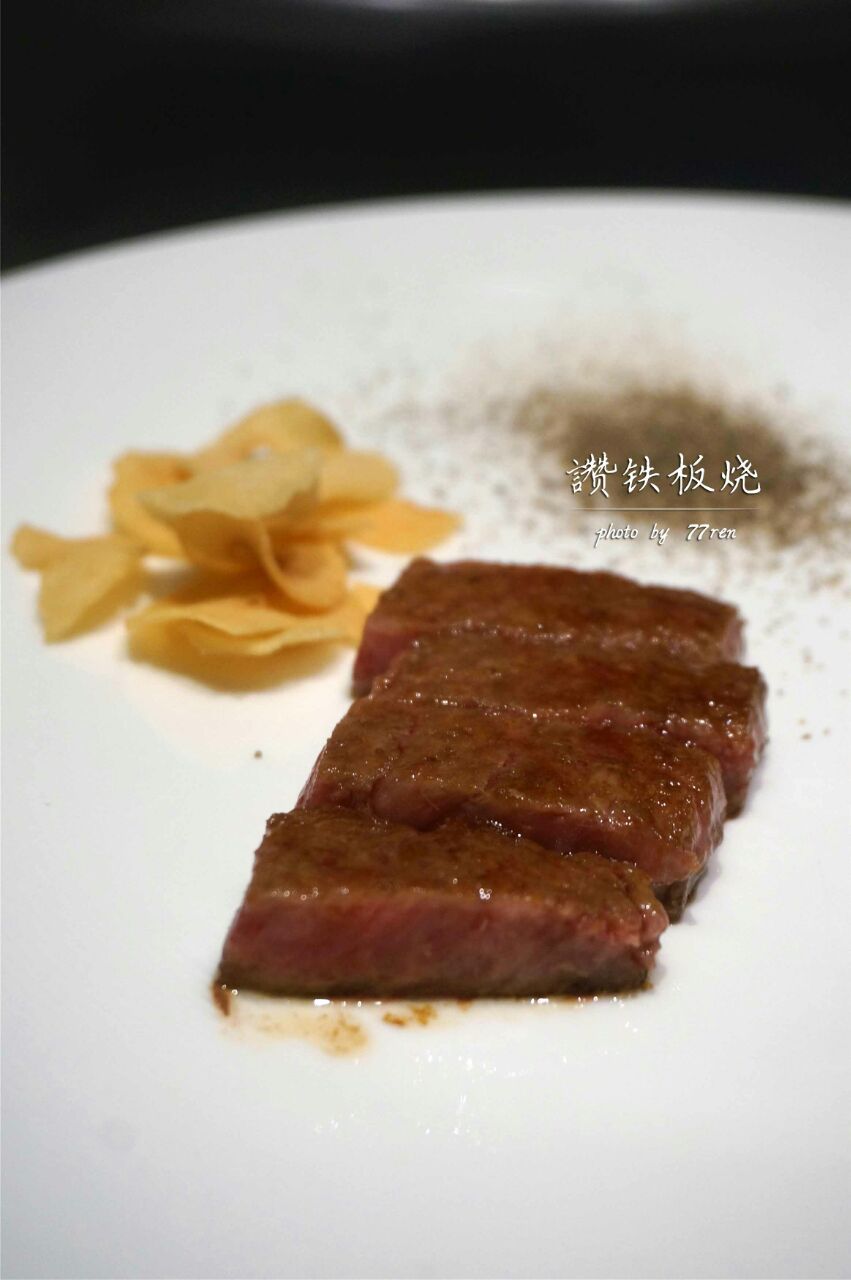 汤品&杂粮面包,杂粮面包有配黄油,汤品是四选一,阿拉要的牛尾汤,挺浓郁的。 法式前菜,底层是蛋糕,主要是慕斯,表层有鱼籽和鱼子酱,咸甜咸甜的。 铁板龙虾佐南瓜酱,主厨介绍龙虾都是活剥的,表层有芝士,配的南瓜酱要多蘸写,回味很香。 法式鹅肝佐波特红酒酱,个人对鹅肝是有偏爱的,他们家的鹅肝口感扎实,还会点缀三片松茸,配着红酒酱会解腻。 昆布鲍鱼佐松露鸡汁酱,鲍鱼是在昆布的包裹下煮熟的,带有昆布的香味,底层的芝麻叶用松露油拌过,不过个人不好这口。 澳洲顶级和牛,和牛煎的五分熟,主厨是切好放在盘子里给我们的,口感很嫩油脂含量也高,不配蒜片略腻。