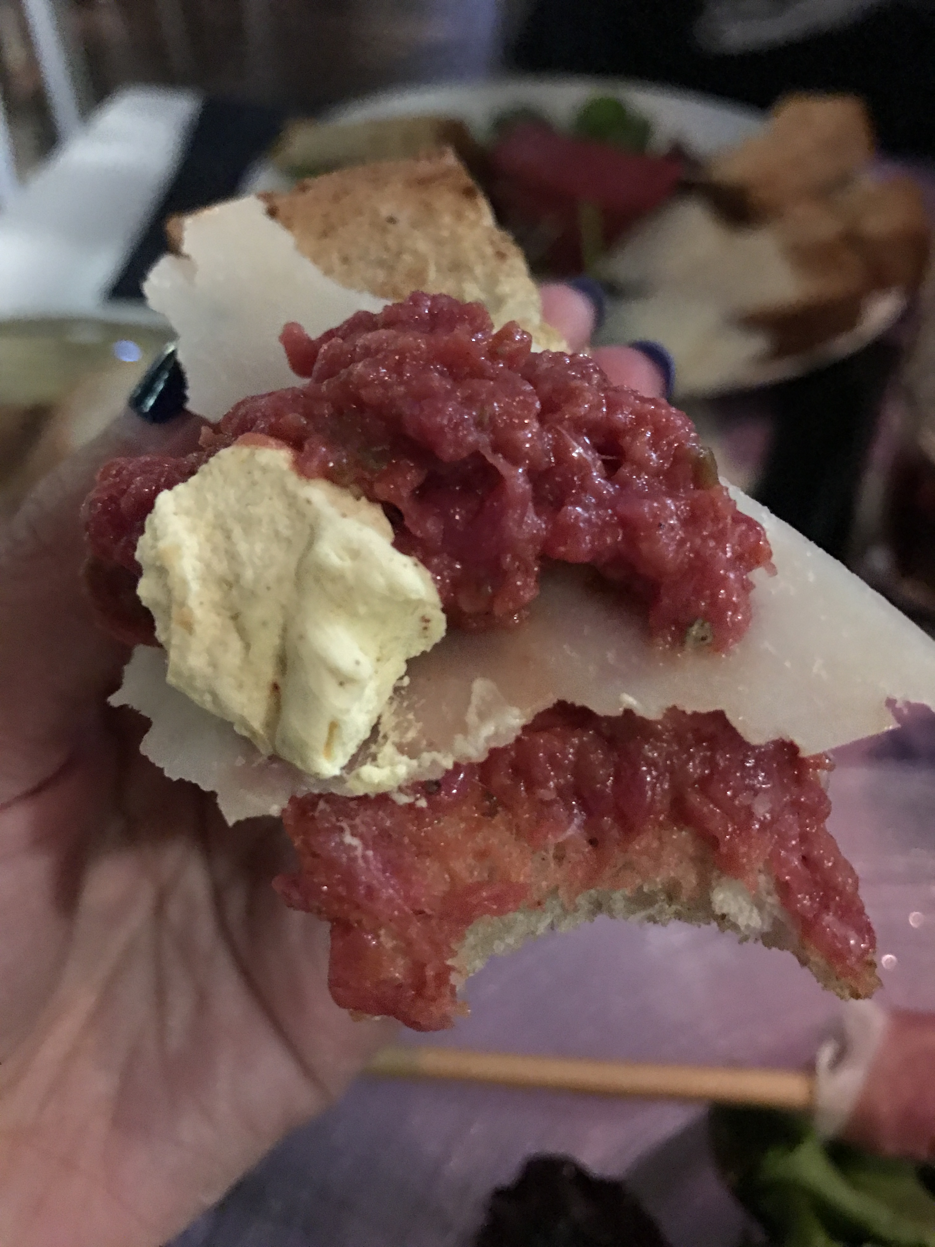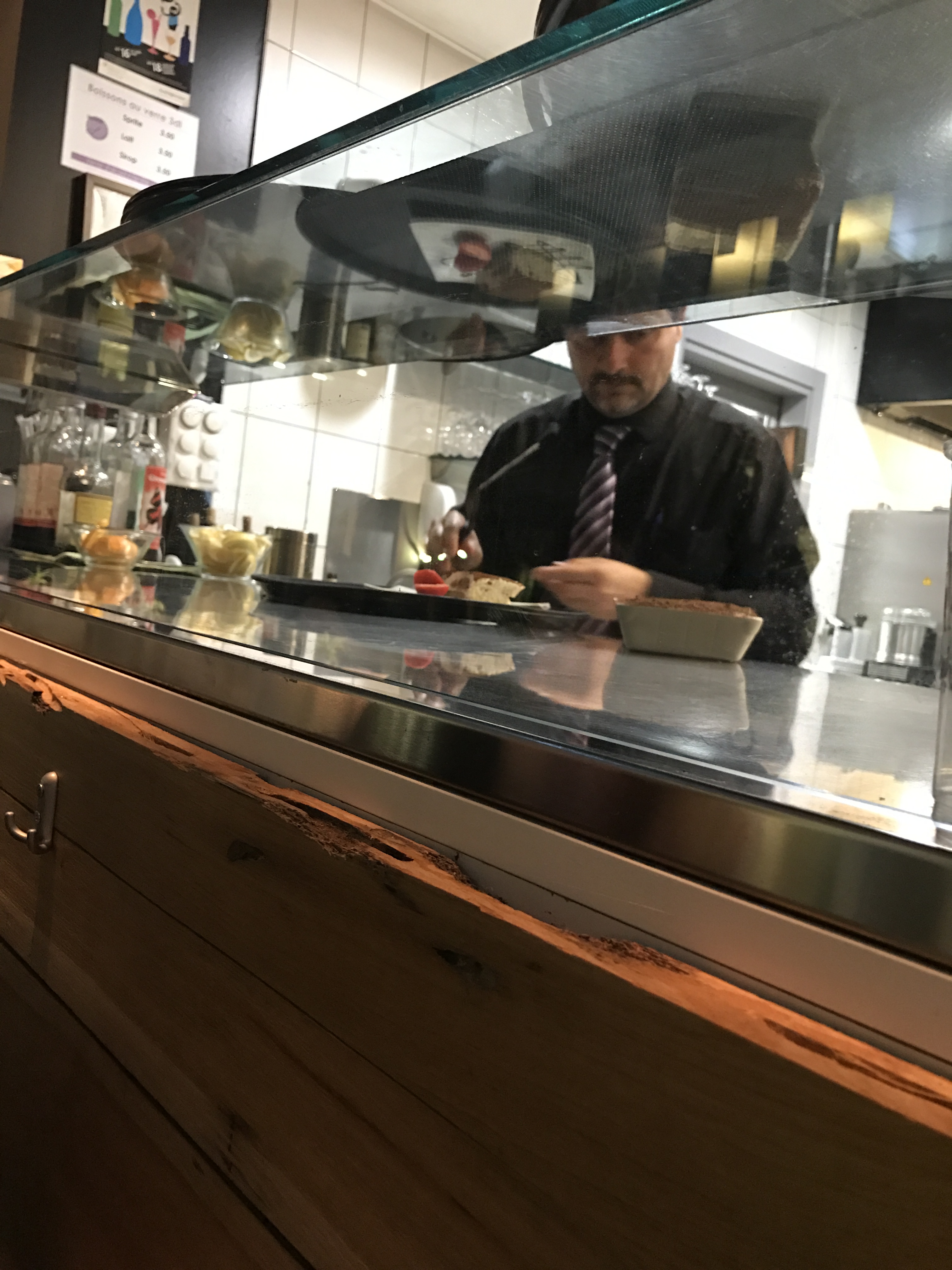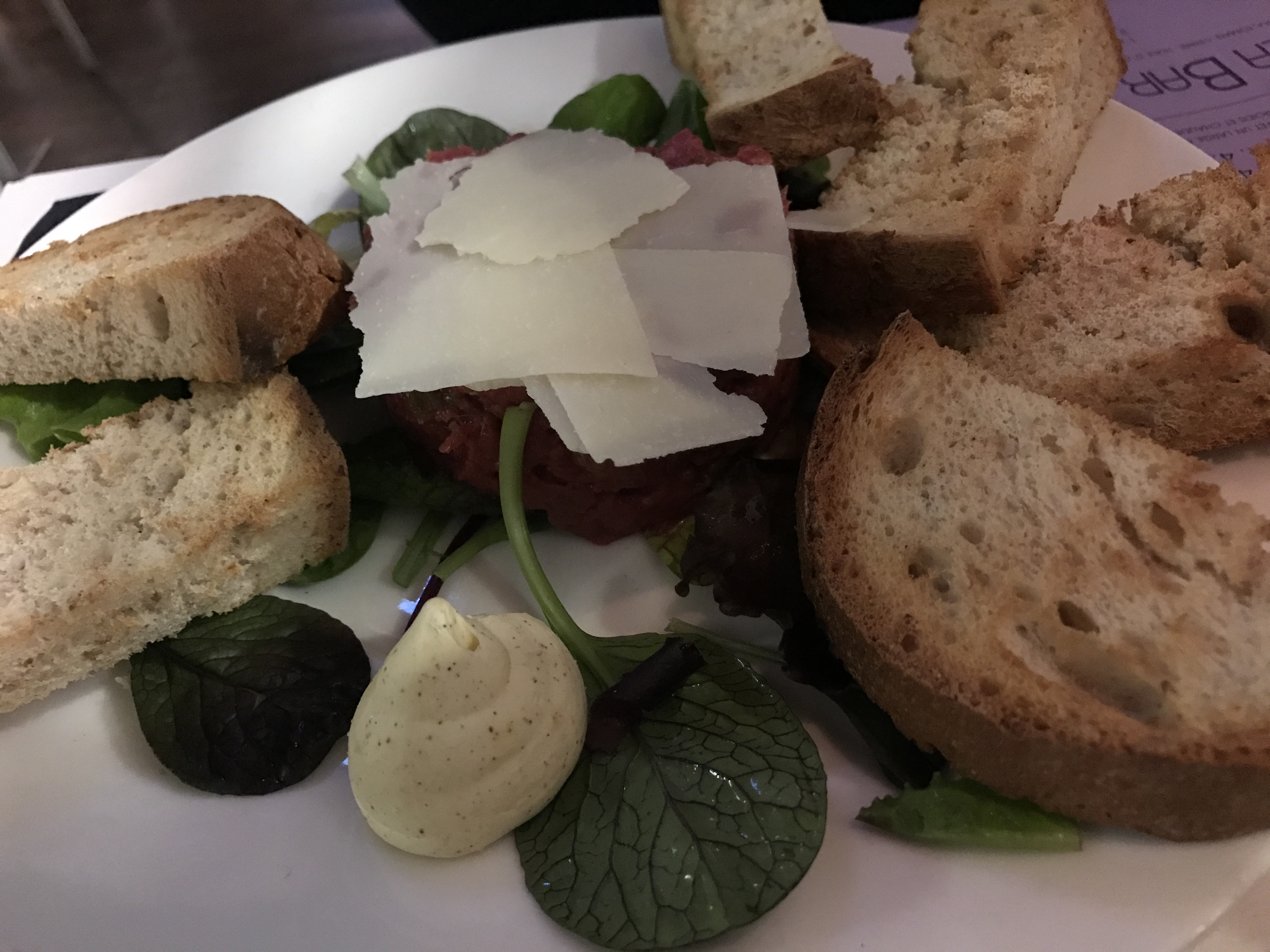 在这个广场上闲逛,然后看到了这家餐厅,于是就在这里食用晚餐了~ 餐厅不算小,有室内和室外的座位,10月的瑞士已经有点小冷了,于是坐在室内~ 是偶然进入的餐厅,没想到味道那么的好~ 点了一个生牛肉,非常好吃~ 看似碎肉的样子,放在面包上,配上芝士,口感很好,而且牛肉和芝士的搭配很完美~ 服务也不错,工作人员很NICE~