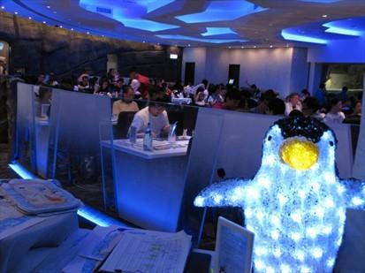 冰极餐厅是一座位于香港海洋公园企鹅博物馆内占地480平米的主题餐厅。开设企鹅主题餐厅的初衷在于向游客展示企鹅的生活习性和生存环境,从而激发游客的好奇心,为包括家庭和孩子在内的游客带来趣味盎然的体验。 开设企鹅主题餐厅的初衷在于向游客展示企鹅的生活习性和生存环境,从而激发游客的好奇心,为包括家庭和孩子在内 的游客带来趣味盎然的体验。设计师匠心独运,想要营造一种去企鹅家里做客的氛围:企鹅是主人,客人是在它家里用餐。