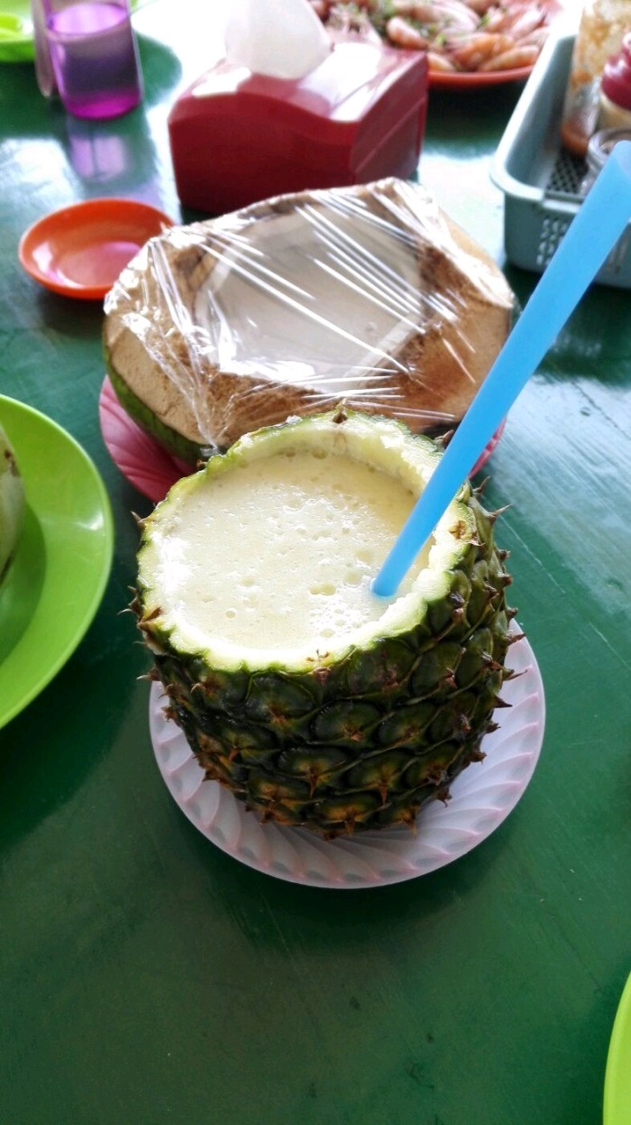 基围虾和皮皮虾居然放在一起煮,这样基围虾明显就会老很多,菠萝汁和椰子汁都是事先做好的,放在冰箱...东西做的有点粗糙吧,基围虾和皮皮虾居然放在一起煮,这样基围虾明显就会老很多,菠萝汁和椰子汁都是事先做好的,放在冰箱里面,不是特别新鲜。