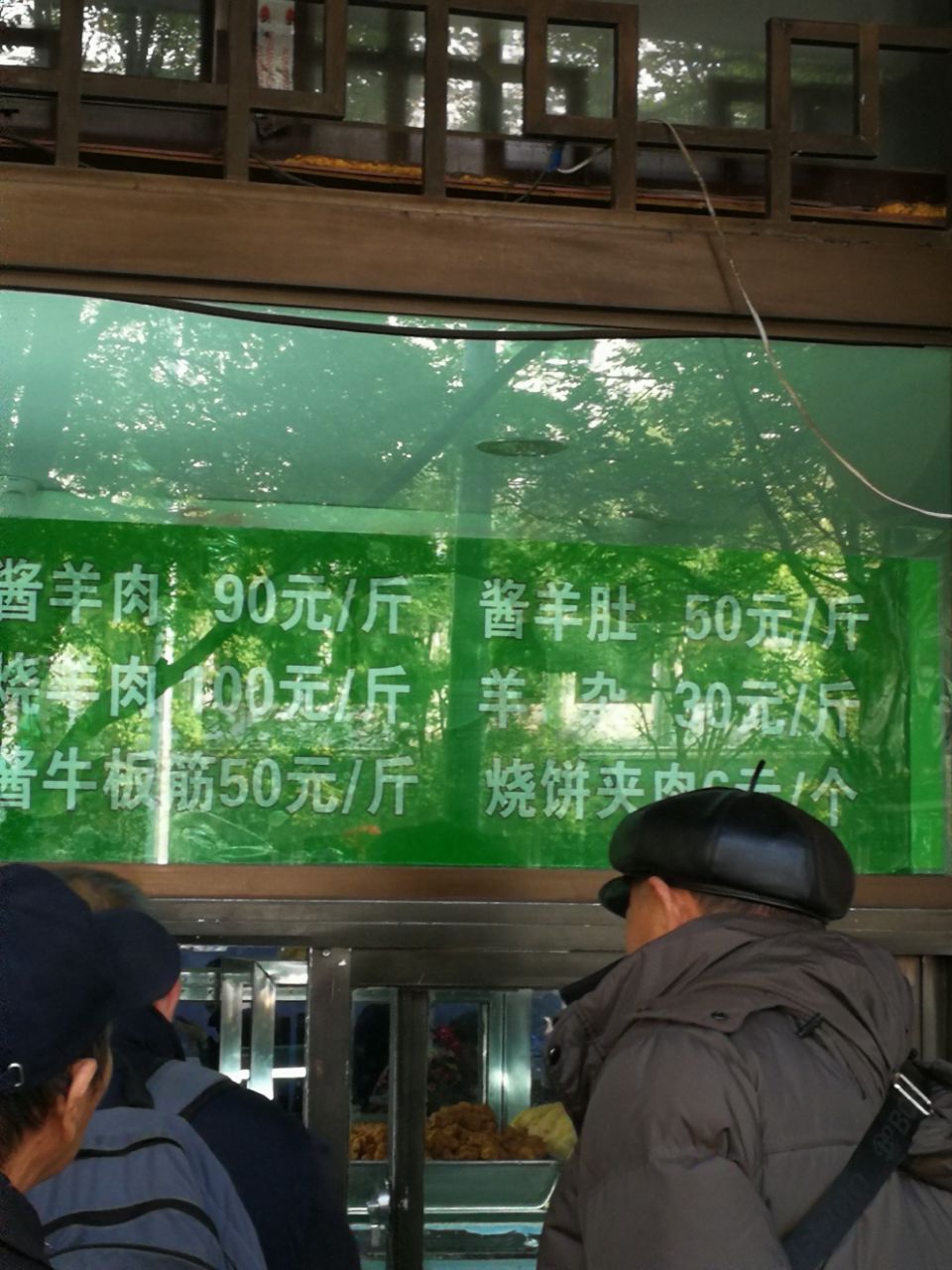 就在牛街礼拜寺南边不远,路东边。门口的外面窗口那长长的队伍就非常吸引人。经营的品种丰富极了,单是早点就有油饼、糖油饼、豆包、包子、豆浆、豆腐脑、面茶、豆泡汤、羊肚汤、羊杂汤、粥…它家的烧羊肉、酱牛肉等味道真不错。