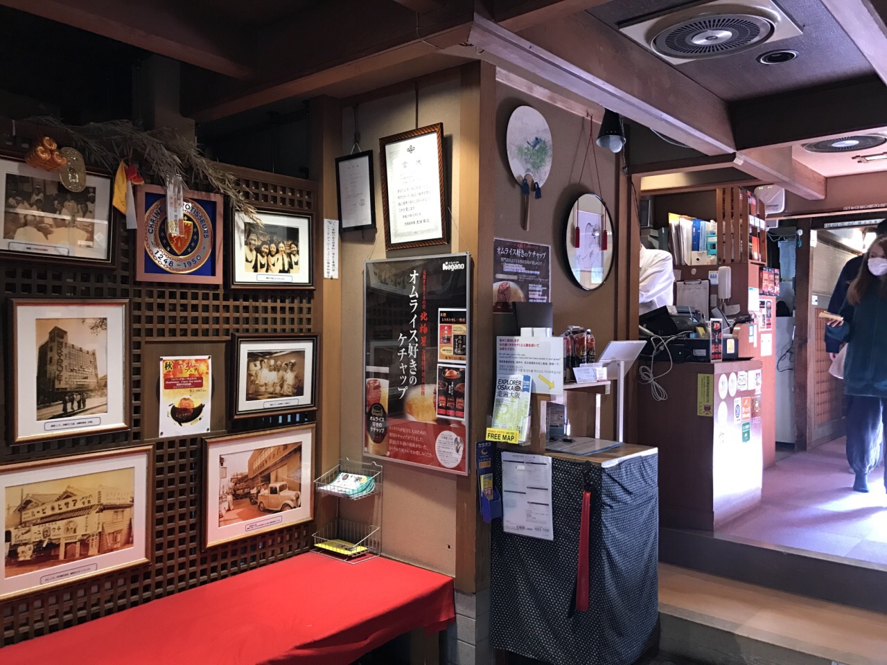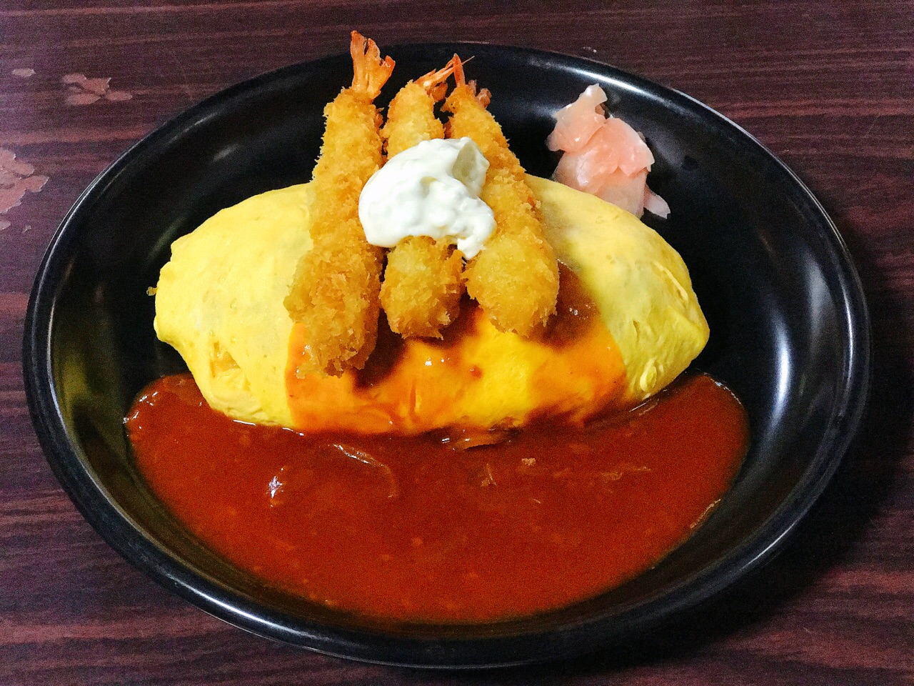 大阪著名的蛋包饭,味道比我想象的有一些差距.可能这家推崇的是传统的味道.点的牛肉蛋包饭套餐,套餐配有三个炸虾和味曾汤.牛肉饭是牛肉薄片炒的,口味与日式炒饭较为接近,相比现在欧式的蛋包饭少了一些奶味的口感及软软的蛋皮.酱汁也应该是传统的味道.