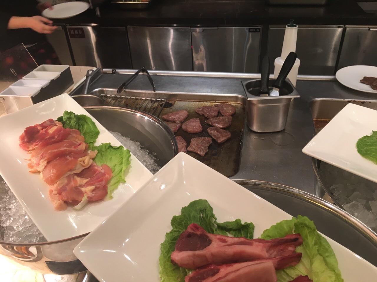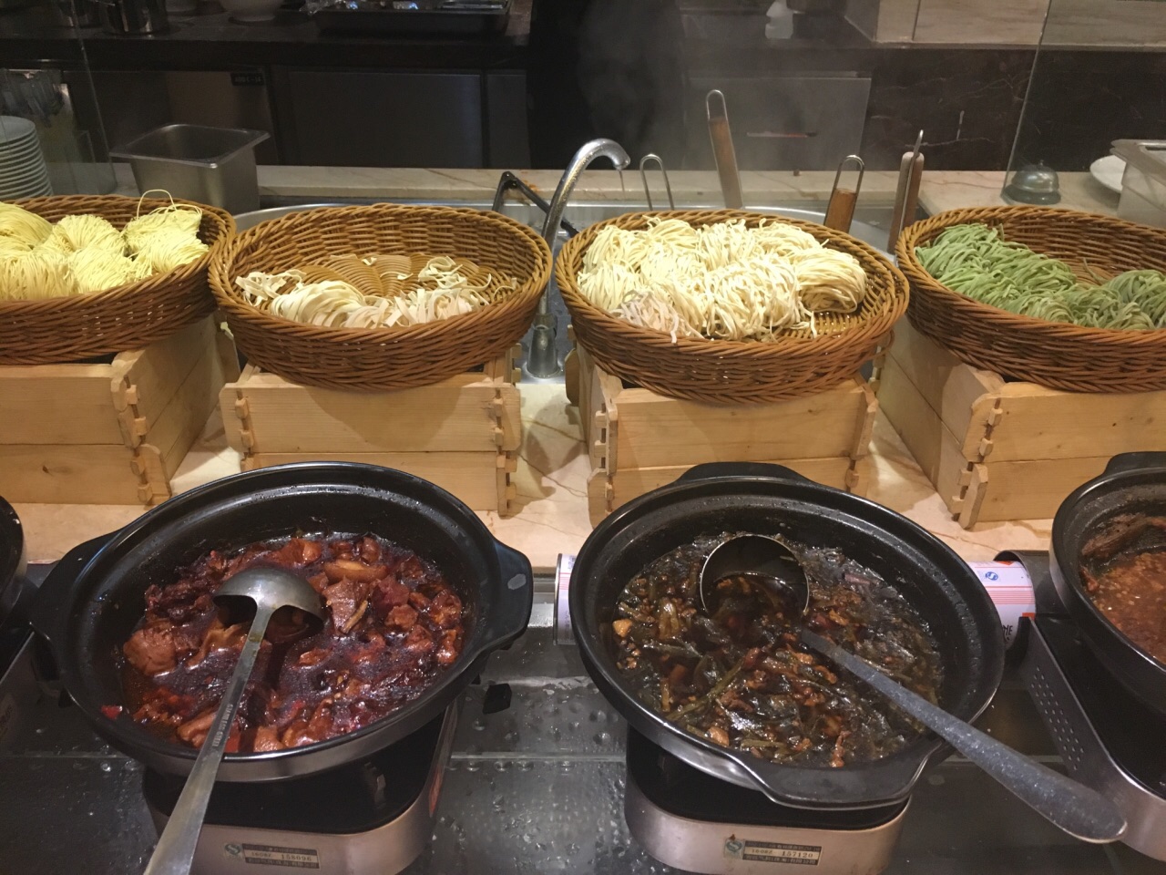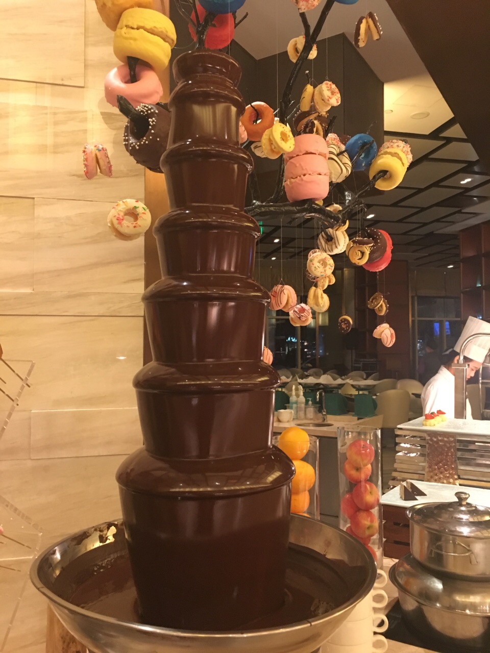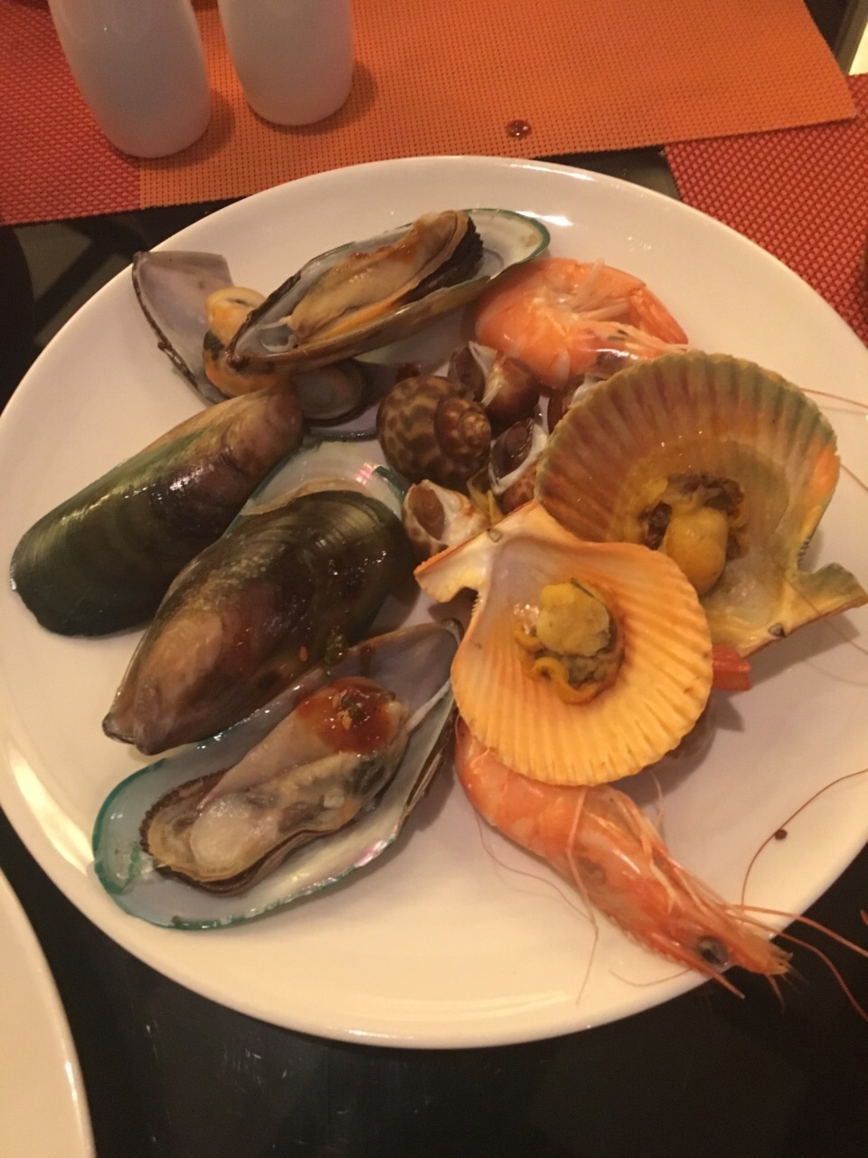 自助餐厅不是很大,晚餐我们取了牛排,很不错,肉质鲜嫩,不生不老,生蚝也还可以,没有羊排,没有鹅肝。三文鱼和其他海鲜一般,中式菜品还行吧,冰激凌还不错,西点不是很细腻,味道还可以。中式糕点还可以。早餐还不错,吃到了河南的糊辣汤。