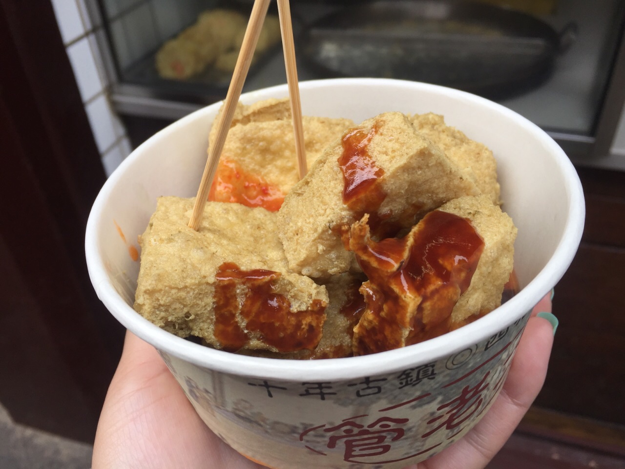 网友2017-11-11...铺蛮干净的,臭豆腐闻着臭吃着香,现煎的,可以堂吃也可以外带,蘸点甜酱辣酱,臭豆腐鲜嫩多汁,好吃古镇这边臭豆腐摊都很受欢迎都要排队的,这家管老太店铺蛮干净的,臭豆腐闻着臭吃着香,现煎的,可以堂吃也可以外带,蘸点甜酱辣酱,臭豆腐鲜嫩多汁,好吃。
