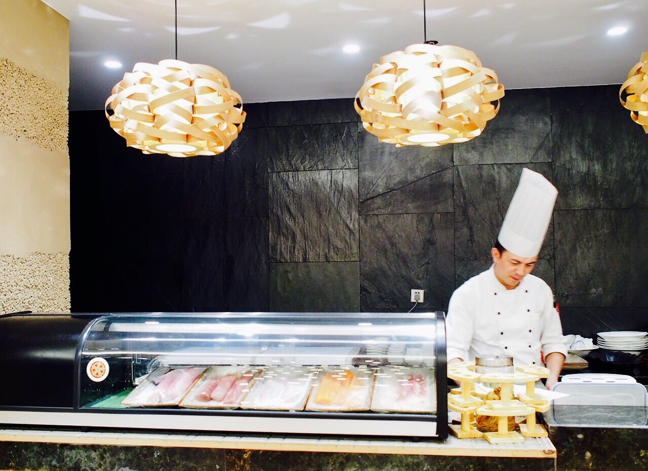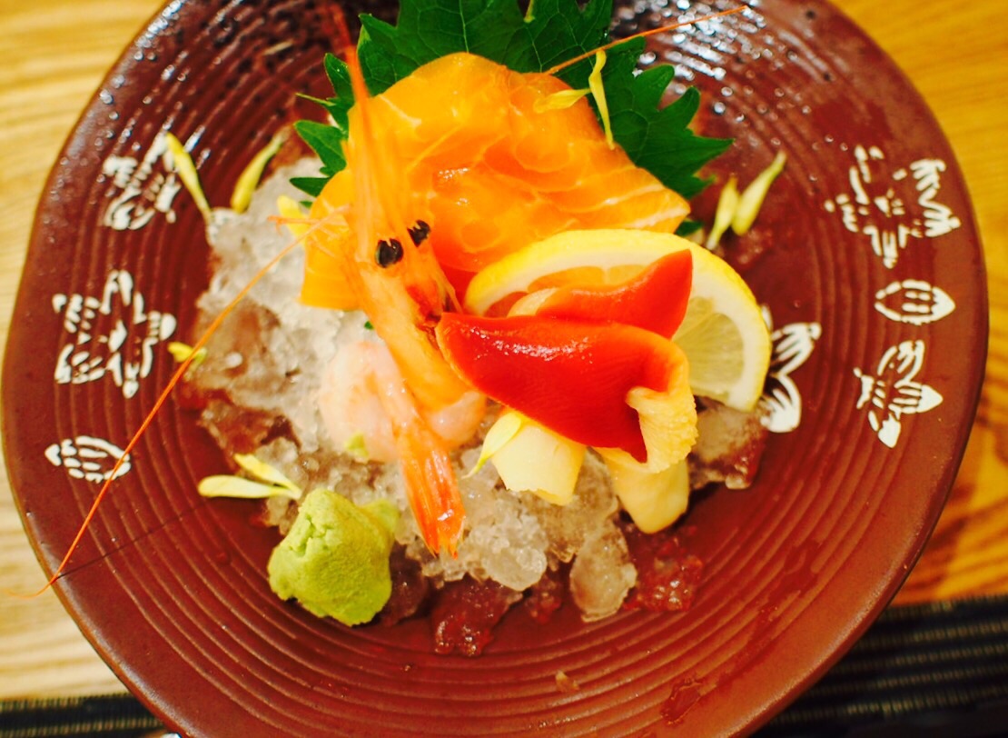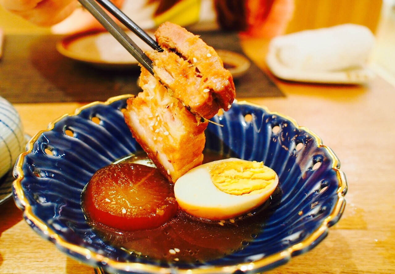 天妇罗配的明虾杏仁和大叶扇贝,拌过萝卜泥的酱汁蘸着吃,不会很油腻。主食是清汤荞麦面,前面因为会比较油一点,这就比较清淡了,过渡很好。最后是甜品,阴阳米糕,一白,一绿,糯米做的团子吃口很弹,没有甜味,是因为更好的衬托芝麻味的冰淇淋。还搭配了季节性水果哈密瓜和西瓜若干。
