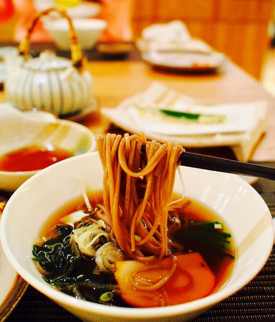 主食是清汤荞麦面,前面因为会比较油一点,这就比较清淡了,过渡很好。还搭配了季节性水果哈密瓜和西瓜若干