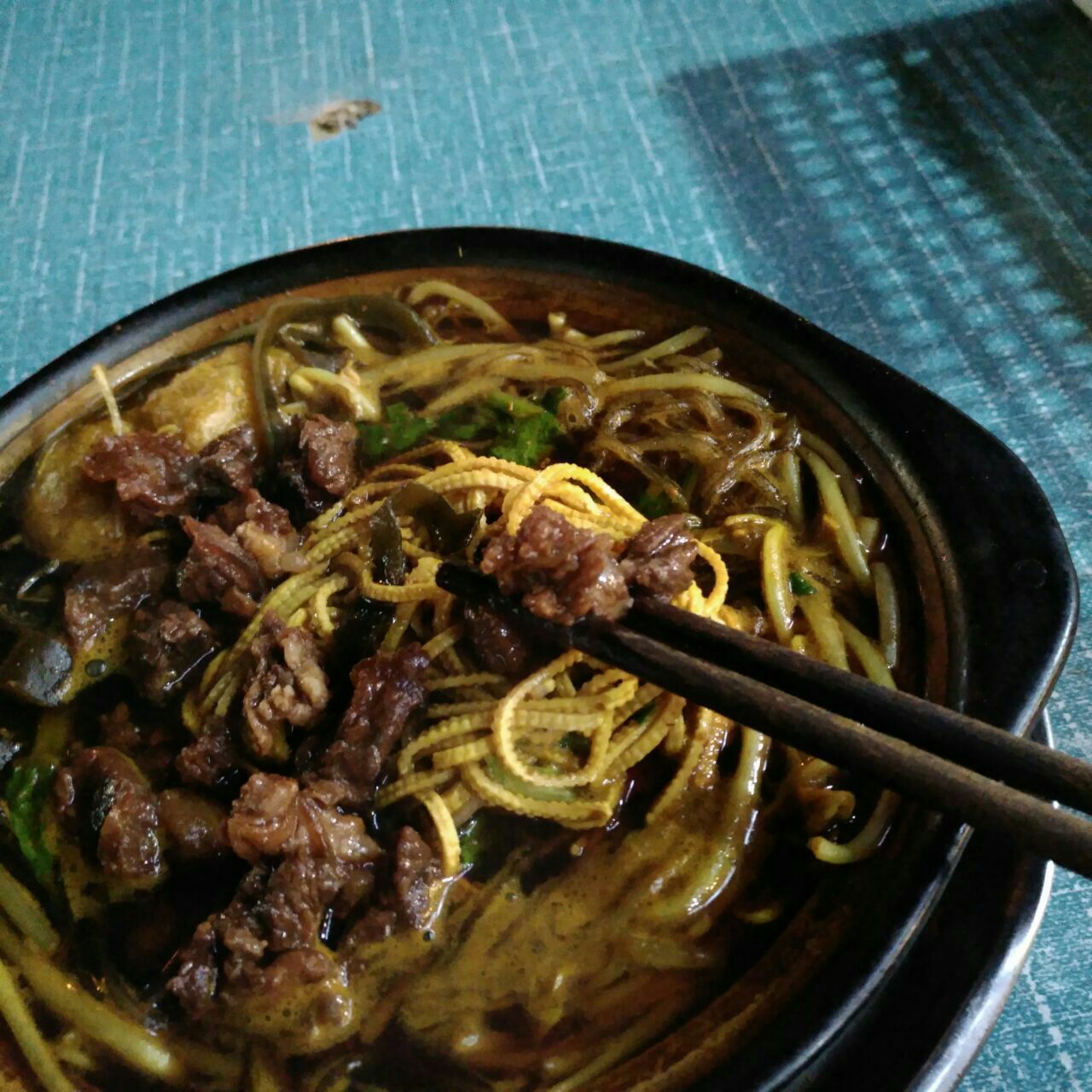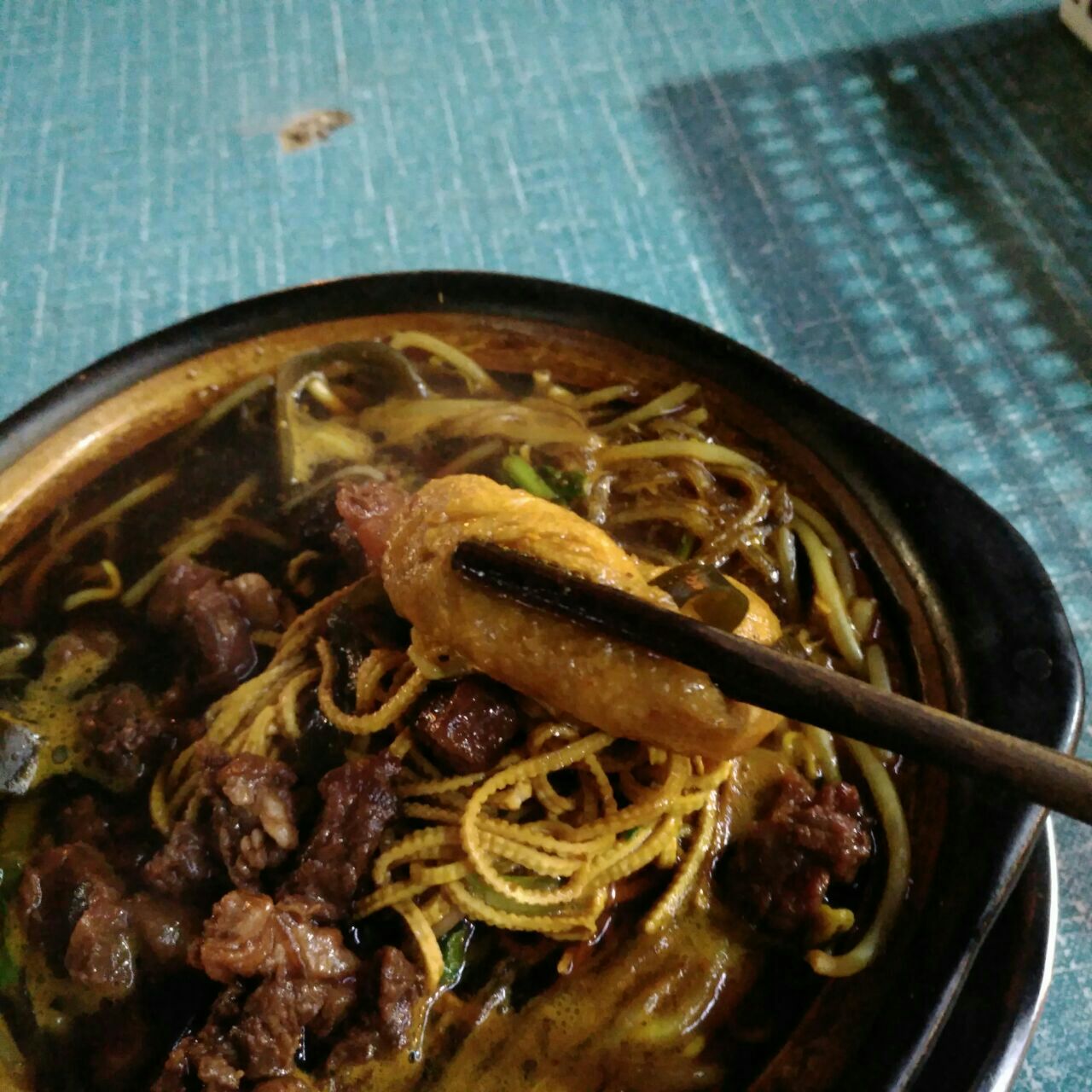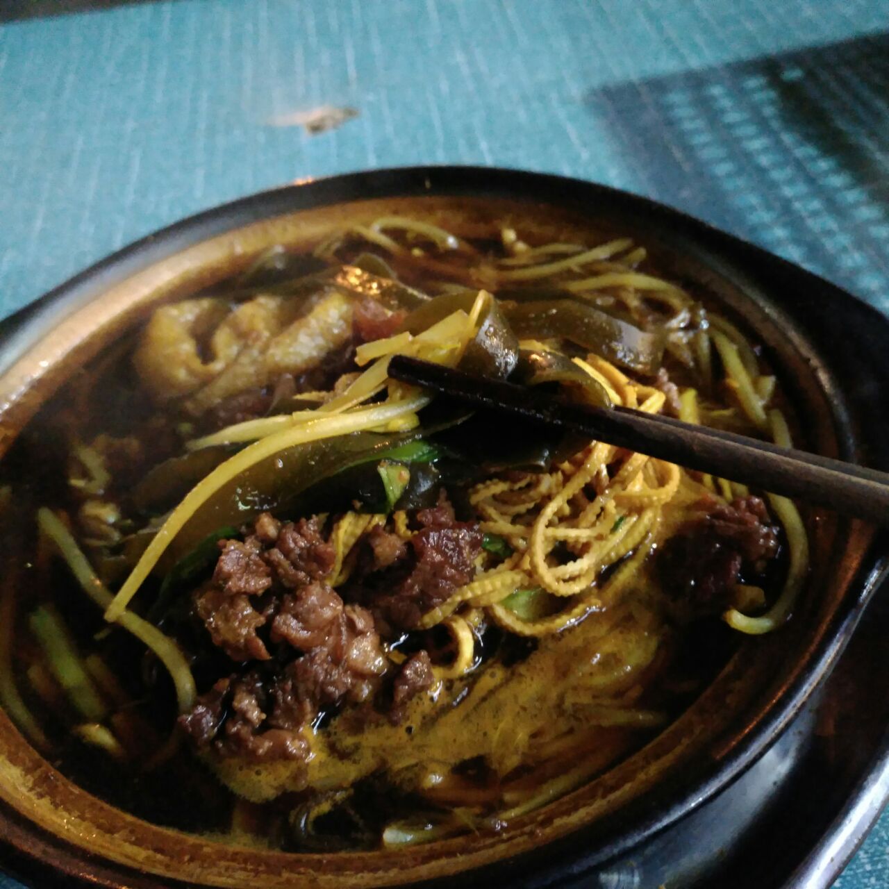牛肉炖得很烂很入味,配料有千张皮,海带丝,鹌鹑蛋,面筋等等。分量足,食材丰富。一个小锅吃下去非常饱肚