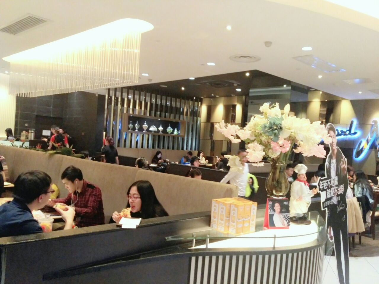 顾客非常多。服务员的态度很好。点单和上菜速度都非常快。燃情烤翅味道非常棒。完全不会有油腻的感觉必胜客城西银泰店。 位置在城西银泰地下-1层。顾客非常多。服务员的态度很好。点单和上菜速度都非常快。店内的环境优雅。燃情烤翅味道非常棒。鸡皮烤的金黄油亮。鸡肉鲜嫩香甜。完全不会有油腻的感觉。