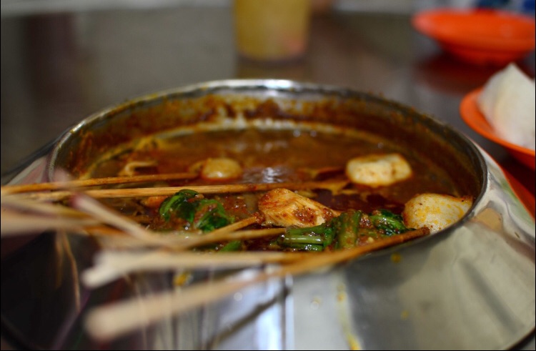 沙爹火锅,其实就和麻辣烫差不多,就是主料不同,自己选串,然后涮着吃。味道浓郁,很香很好吃来马六甲必去的一家店,所以里面也是以游客为主。沙爹火锅,其实就和麻辣烫差不多,就是主料不同,自己选串,然后涮着吃。服务员会过来搅拌锅底防止糊锅。味道浓郁,很香很好吃。