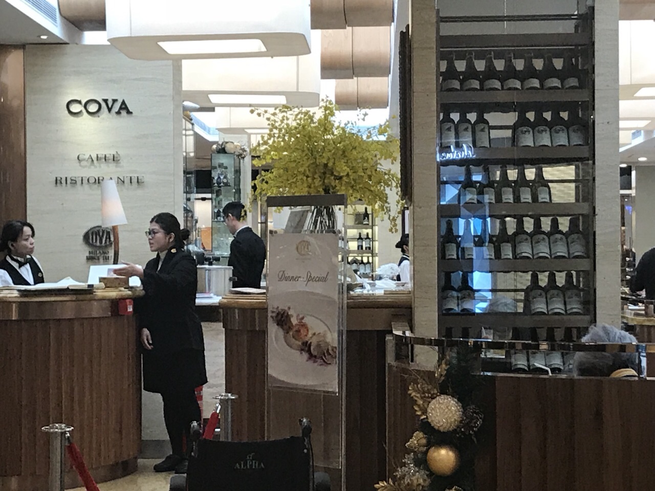 网友2017-11-17这里提供意大利美食:意大利面、牛排、烟熏三文鱼、甜点、牛肉汤等。品相精致,味道不俗金黄的迎春花,大把大把地开放在Cova的中央和前台。这里提供意大利美食:意大利面、牛排、烟熏三文鱼、甜点、牛肉汤等。品相精致,味道不俗。