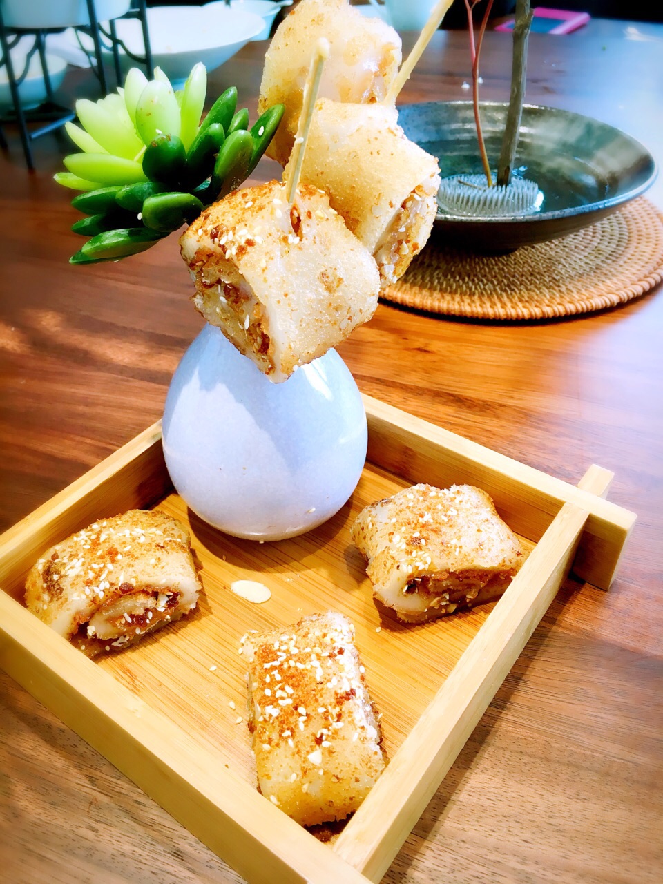 吃过鸡毛兑糖家宴, 这次来吃鸡毛兑糖尚宴, 不一样的小清新, 让人走进院内就觉豁然开朗, 就好像重新认识一个人, 从叫什么名字开始。 一砖一瓦都渗透着整家店的大气简约。 红糖麻糍中卷有红糖、芝麻与杏仁碎, 十分香甜软糯。 猪油渣芋艿羹, 继承了宁波最传统的做法, 选用奉化最正宗的芋头。油渣酥脆、羹汁滚烫、芋艿粉嫩,猪油的肥润调和着芋艿的粉糯,香味十足,完全是宁波人熟悉的家常味道。 鲍汁芋艿 当平民的芋头遇上贵族的鲍汁, 芋头的翻身之路已然开始。 满满的食欲感充斥着整个饭桌~ 鲜!糯!滑!