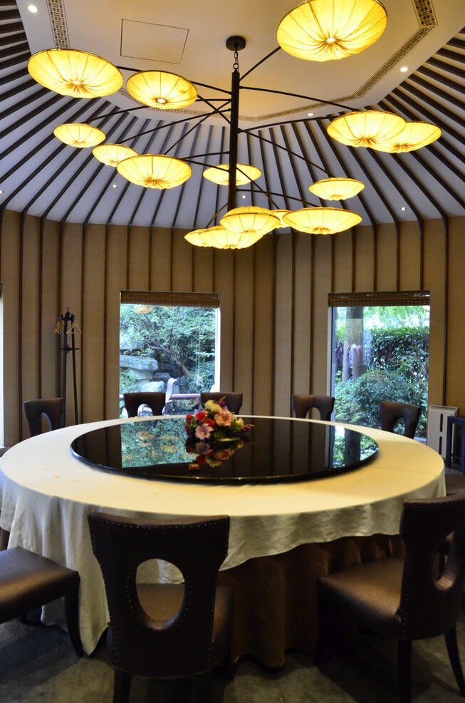 完全是吃环境的店,菜品非常精致,当然价格也不便宜。这里本应是个金融俱乐部自家的会所,走的是高档路线。整个饭店有5000平米,包房个个都很有特色,摆明是做会所的。外面的大包房还能看到整个花园。地下室有个博物馆,据说那个孝庄皇后的床价值2个亿,大开眼界。