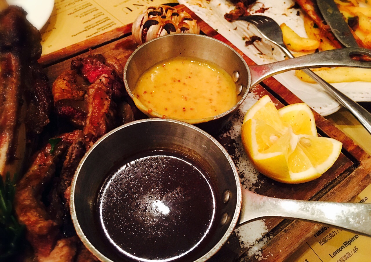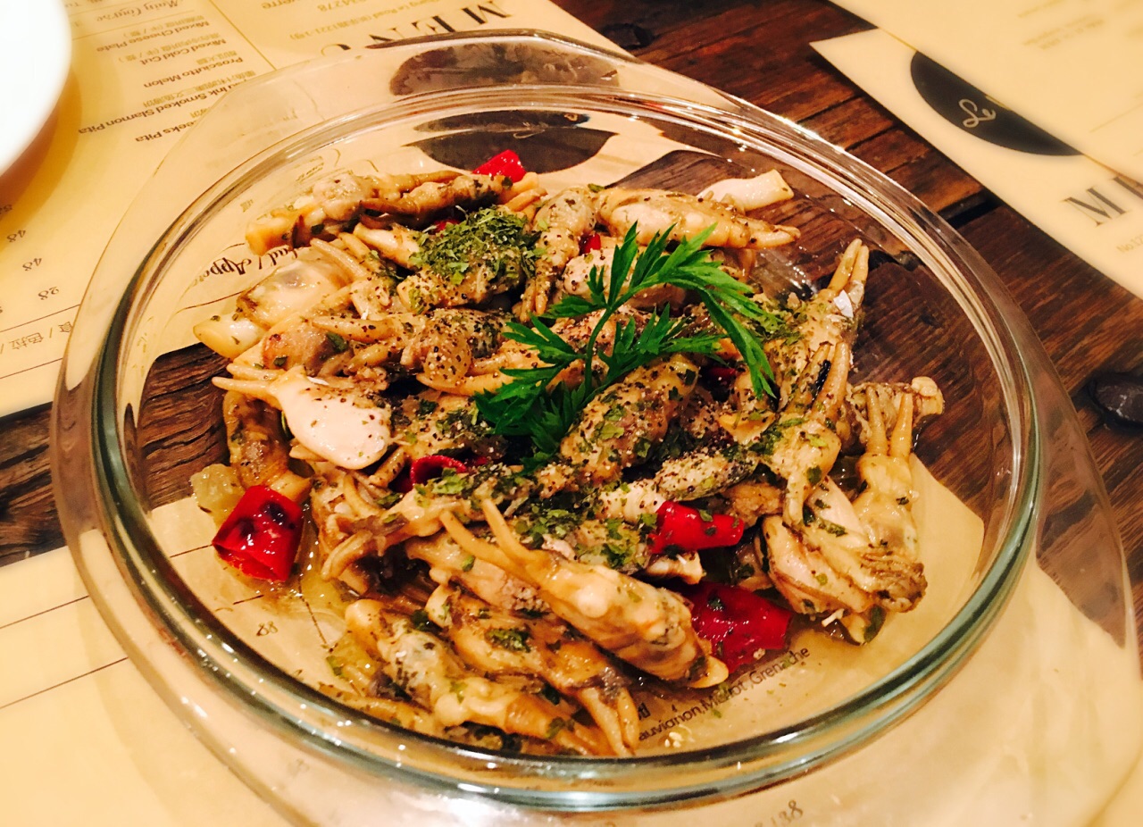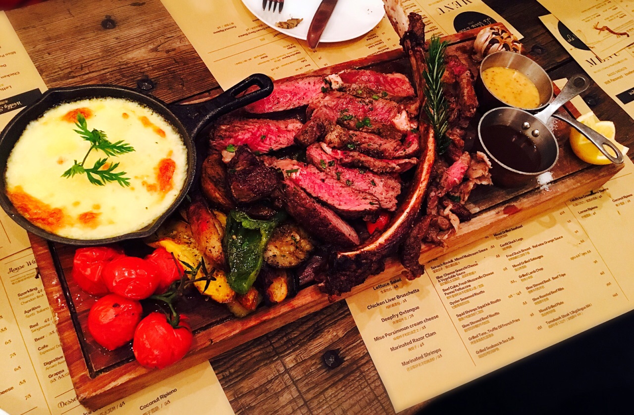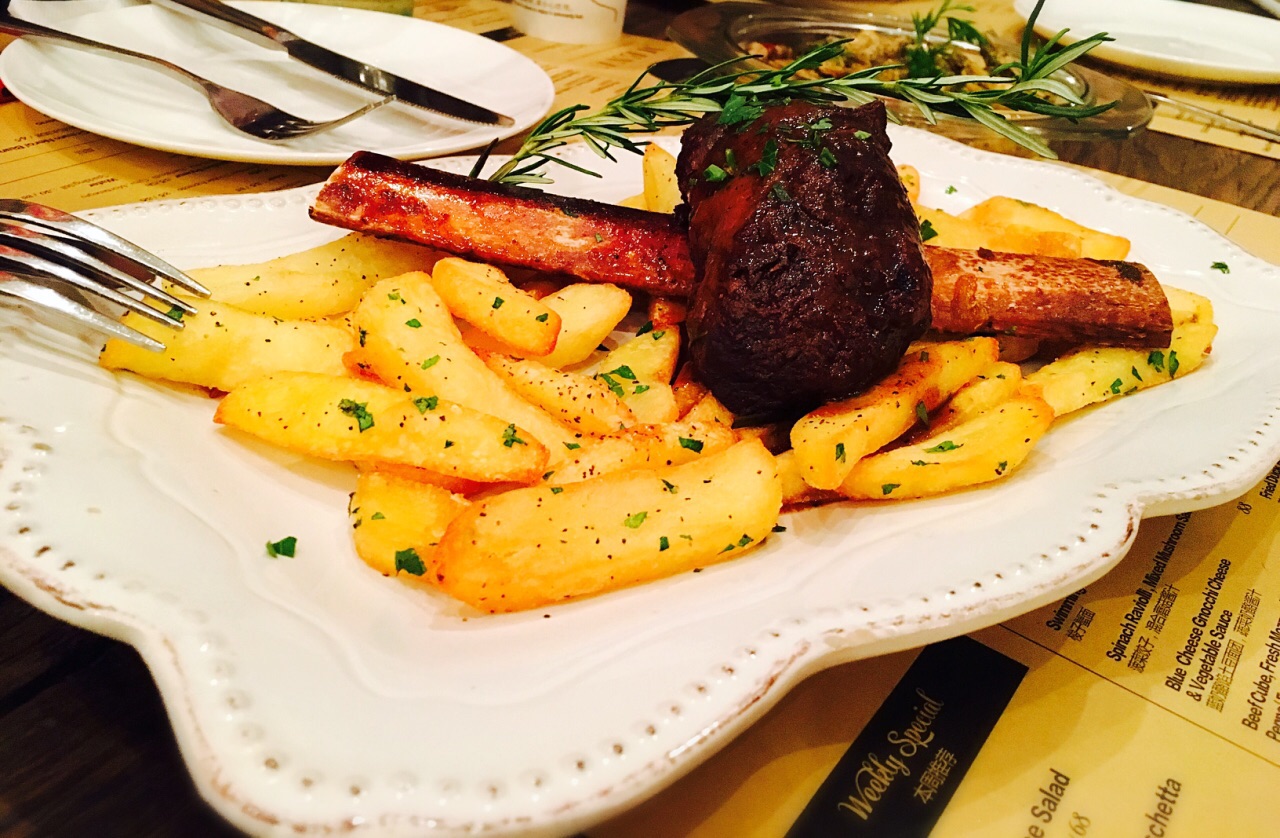 作为必可登推荐的餐厅,这家餐厅的食物还是让我有些失望了,可能正如同他家小黑板上所写,食物一般,酒才是餐厅自豪的部分。 去的时候,章鱼色拉已经没有了。前菜点的蛏子,又老,还有沙子,不推荐。慢炖牛肋排还是挺好吃的,又酥又入味,配的薯条一般。海鲜饭味道还不错,口感不好,太湿了。战斧牛排端上来的时候,牛排已经冷了!!!牛肉味道过得去,但是冷的牛排,感觉总是不太舒服。ps:餐厅里没有免费的水供应。 做了一家意大利餐厅,这家店的环境有点日式的感觉。餐厅环境不错,厕所间有点乱,总有股水沟的味道。