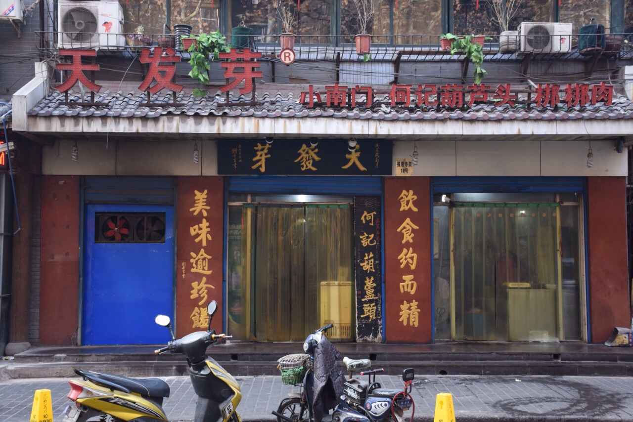 在西安停留一天,就是为了遍访当地的美食,早晨从一碗天发芽何记葫芦头开始。小南门里报恩寺街又被称为葫芦头一条街,在这里你可以品尝一下西安汉民的第一泡馍——葫芦头,再来个宫廷香酥牛肉饼,或者来个麻麻辣辣的惠记粉汤羊血,记得一定要饼和汤分开吃,蒜辣子羊血也不错。就这样走街串巷,走进了当地人的市井生活。