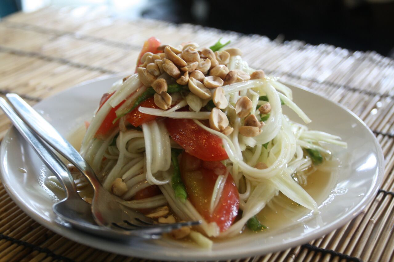 ...偶遇下雨,只是躲雨的一家,人不错,老板很客气,点了一份青木瓜沙拉,合十块钱,份量足,味道很不错