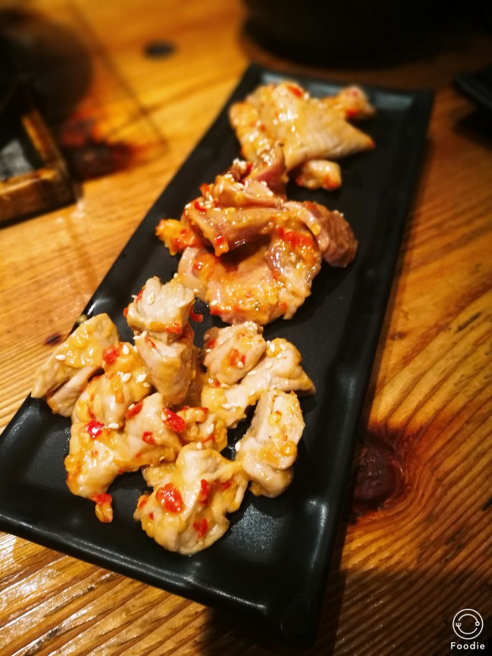 闺密在复旦工作,下班选这里正好,她先到排队,我大概18:30赶到的,正好轮到我们进去,没怎么排队,等我们吃完出来,外面好多人排队,要早点去哦 环境很日式,我喜欢的风格。 可能是晚饭高峰期,服务有点跟不上,可以理解。 特选牛小排,上的第一道菜,腌制入味,烤出来后,又嫩又好吃,以至于忘记拍照了 葱盐牛舌,味道果然比纯烤的好吃,有味道,好评 炖煮牛杂,这个是熟菜,焖得很入味很嫩,好评 还点了个什么拼盘,不是我点的,所以我不知道名字,其中一个辣烤大肠,非常好吃 还有个类似炒粉的,也不知道名字,不是我点的,这个不好吃,慎点