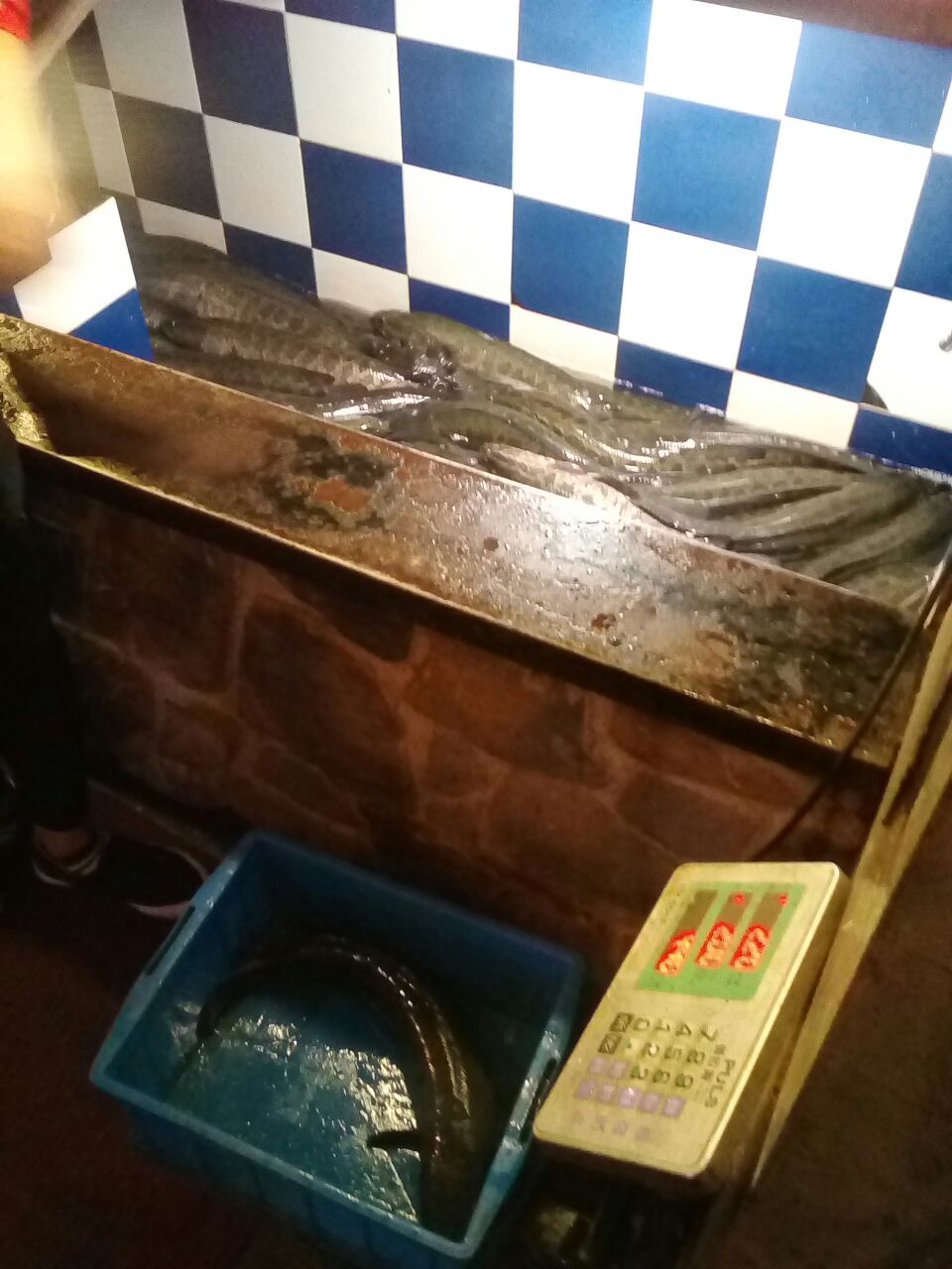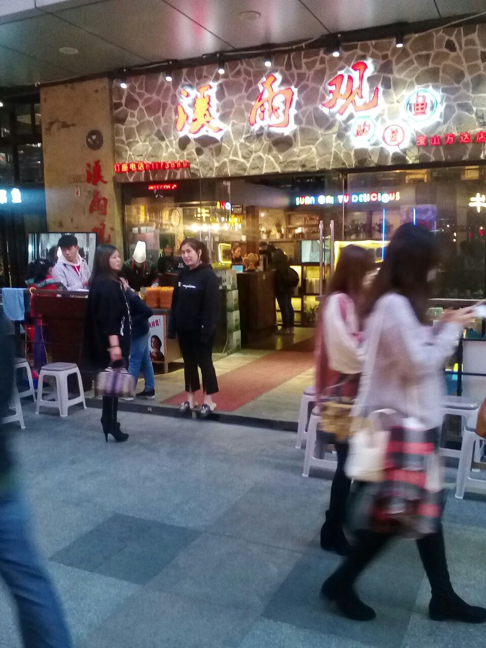 非常知名的一家连锁中餐厅,店家主打特色烤鱼、酸菜鱼,客人进店后先到鱼池挑鱼,当场过称(可惜只有一种鱼非常知名的一家连锁中餐厅,店家主打特色烤鱼、酸菜鱼,客人进店后先到鱼池挑鱼,当场过称(可惜只有一种鱼),门口有阿三现场制作飞饼。