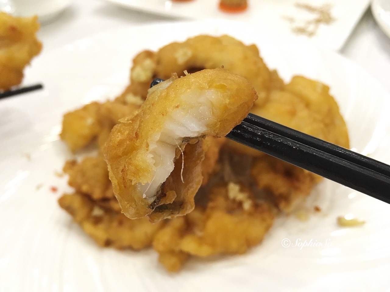 酥炸的外皮狠酥脆,鱼肉很好的封在酥皮内,肉汁丰富而嫩滑,好吃得停不下来