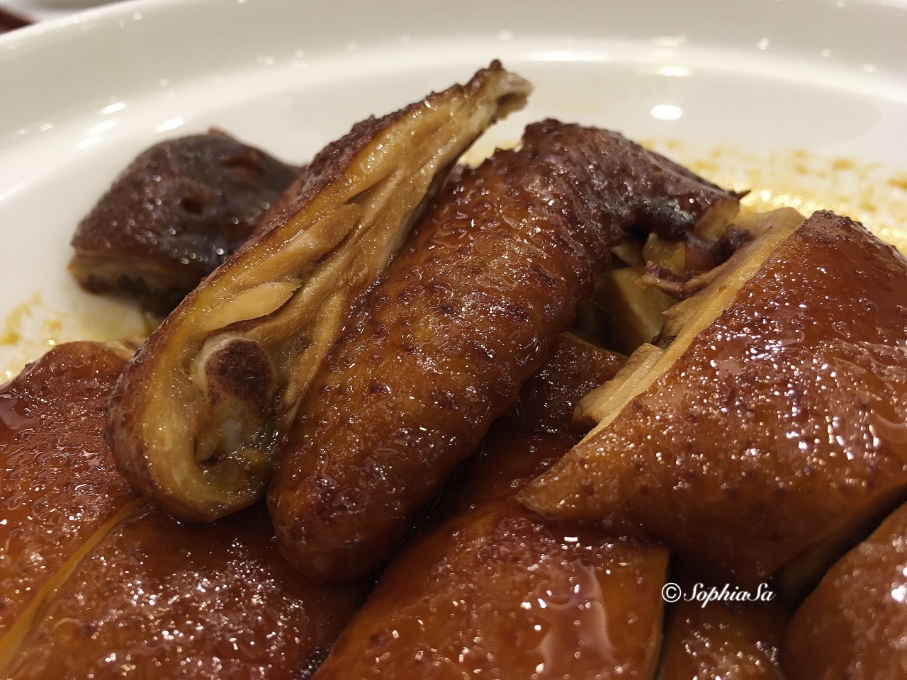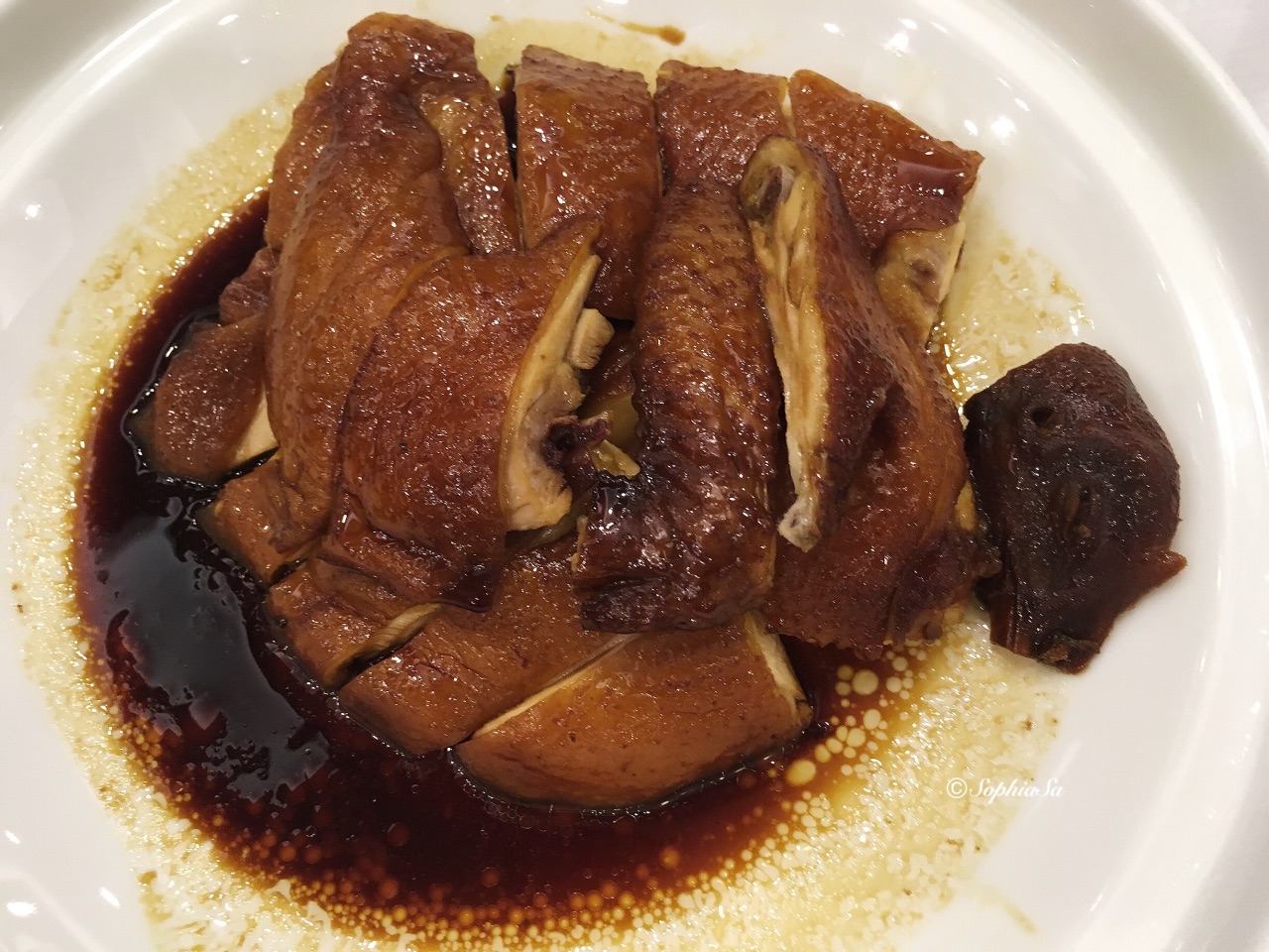 作为土生土长的广州人,广州酒家还真是我懂事以来听过和吃过的第一家,比起现在更多的精致粤菜后起之秀,几十年来它更多的是对粤菜的坚持。 在越华路珠江国际大厦的这间广州酒家,邻近北京路商圈,比其他分店走高档路线,位于5楼的酒家大堂,桌椅摆放空间大,茶客们聊天不会比邻座干扰,挺舒服。 晚饭时段过来,点心已经不能满足肚饿的吃货,赶紧在白切鸡和豉油鸡之间,选择了味道更浓的豉油鸡,还有鱼肚腐竹锅,炸雪糕鱼(九肚鱼),还有点心类的鳗鱼福袋。菜式虽然还是比较普通家常,但是这间独有天极品招牌的广州酒家,再普通的菜式都令人期待。 豉油鸡,在广州出名的粤菜馆,鸡简直是不容有失的菜,做得不好,基本招牌就无了。这道豉油鸡酱汁浓厚,鸡皮上色很漂亮,带着油光闪闪的光泽,鸡皮下只有薄薄一层的黄油脂肪,好鸡。鸡肉吸收了厨师特調的豉油汁,非常香浓滑嫩,鸡汁用来捞白饭,不怕胖的话简直是极品。 鱼肚腐竹竹笙锅,材料很丰富,鱼肚的数量很多,上汤汤底鲜甜,里面都是吸收了汤汁的材料,丝瓜尤其好吃。 经理推荐的雪糕鱼,就是我平时狠喜欢的九肚鱼,九肚鱼之所以好吃,因为肉质像滑豆腐,和其他鱼类都不同,而且只有小软骨,一条吃下去,不怕鱼骨卡喉咙。酥炸的外皮狠酥脆,鱼肉很好的封在酥皮内,肉汁丰富而嫩滑,好吃得停不下来。 最后的鳗鱼福袋,比较有趣,整个点心弄得很有心思的一个小钱袋造型,里面放了带汁水的鳗鱼,一口咬下去,冷不防大量的鳗鱼汁一涌而出,赶紧用嘴全部接着不浪费,再次品尝到外酥内嫩的口感。 这间天极品的价格比其他广酒分店略贵,菜式最低50起,三个人四个菜,人均100不到。但是出品符合价格标准,听说点心也很好,下次要试试。