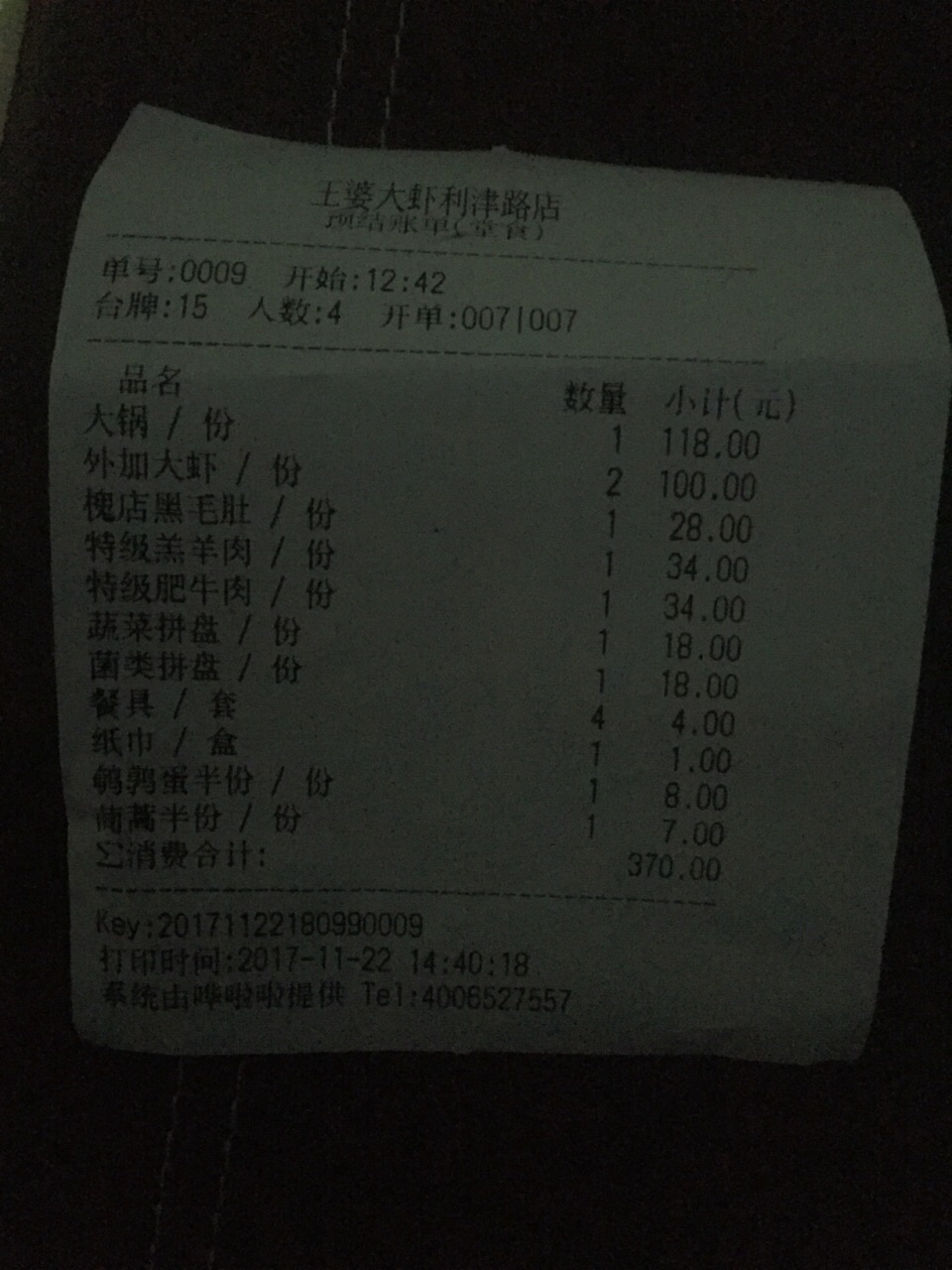 网友2017-11-22非常好吃的大虾,处理的非常干净,不仅去掉虾线,还把壳剥了一半,一斤虾大概十七八只,外加一斤虾才50块非常好吃的大虾,处理的非常干净,不仅去掉虾线,还把壳剥了一半,一斤虾大概十七八只,外加一斤虾才50块,非常划算,服务态度非常好,最后的面条竟然是管饱的,要多少都行,只要能吃完就好,总体感觉非常不错