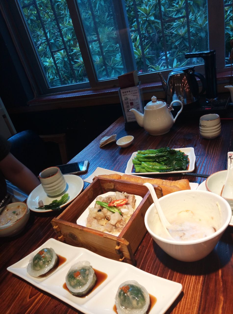 连锁粤菜点心茶楼。口味一般,大众。对于吃货来说太一般了。就是普通粤式粥粉面。环境一般。在社区里面,住宅楼首二层改装。不过在商业中心区只能如此。天河城南门后面社区就是。点了陈醋菠菜饺,感觉怪怪的。油条可以。青菜算OK了。真没觉得有何特色。