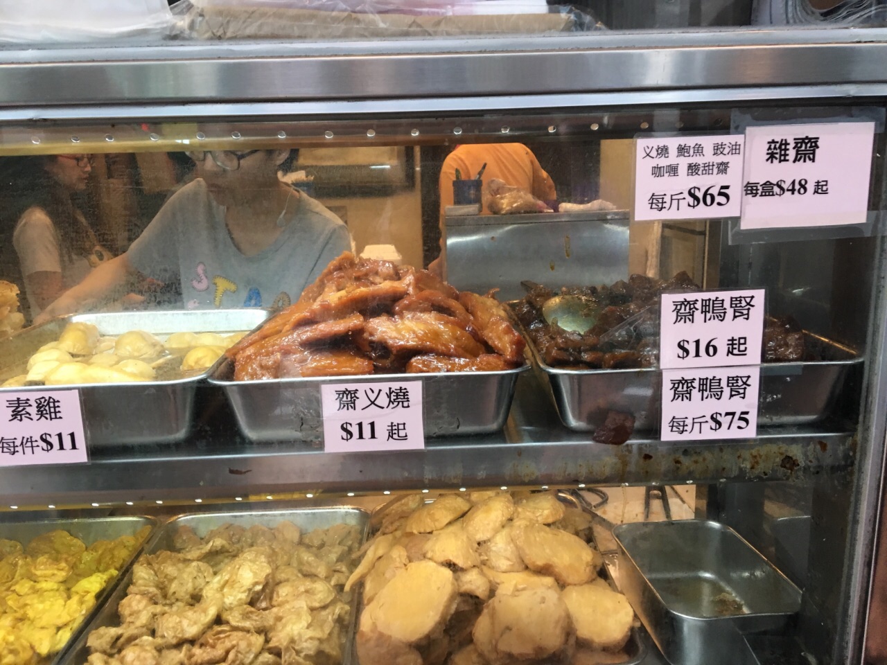 东方小衹园是香港历史最悠久的素食餐厅了,但是对于很少进餐厅正儿八经吃顿素食的我们来讲,它设在餐厅门口的斋食点心就很不错。合桃糊、芋头酥卷、斋卤味这些都是的招牌点心。斋卤味就有斋鸭肾、素鸡、斋义烧、还有斋鲍鱼等等。